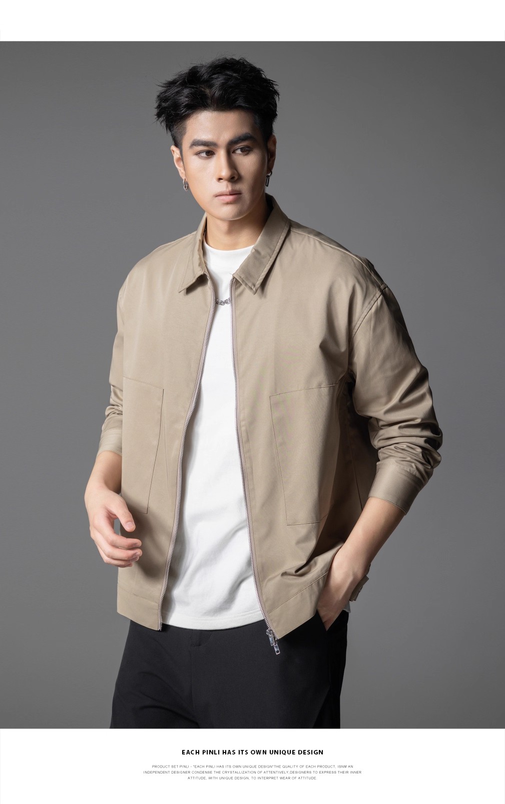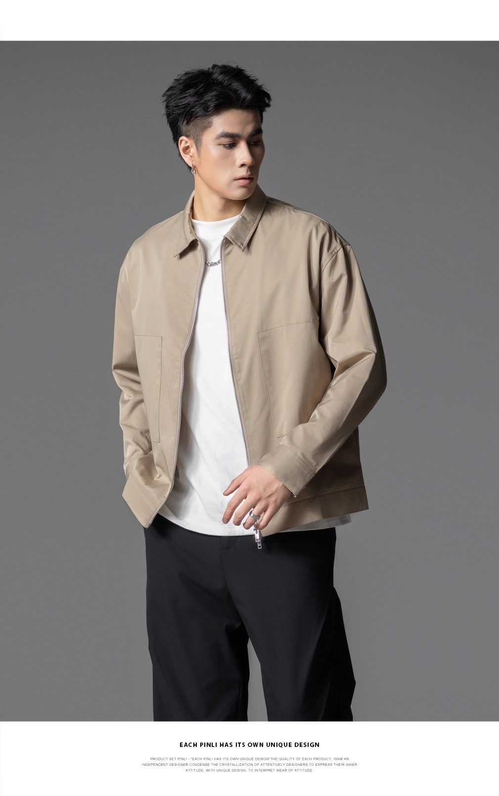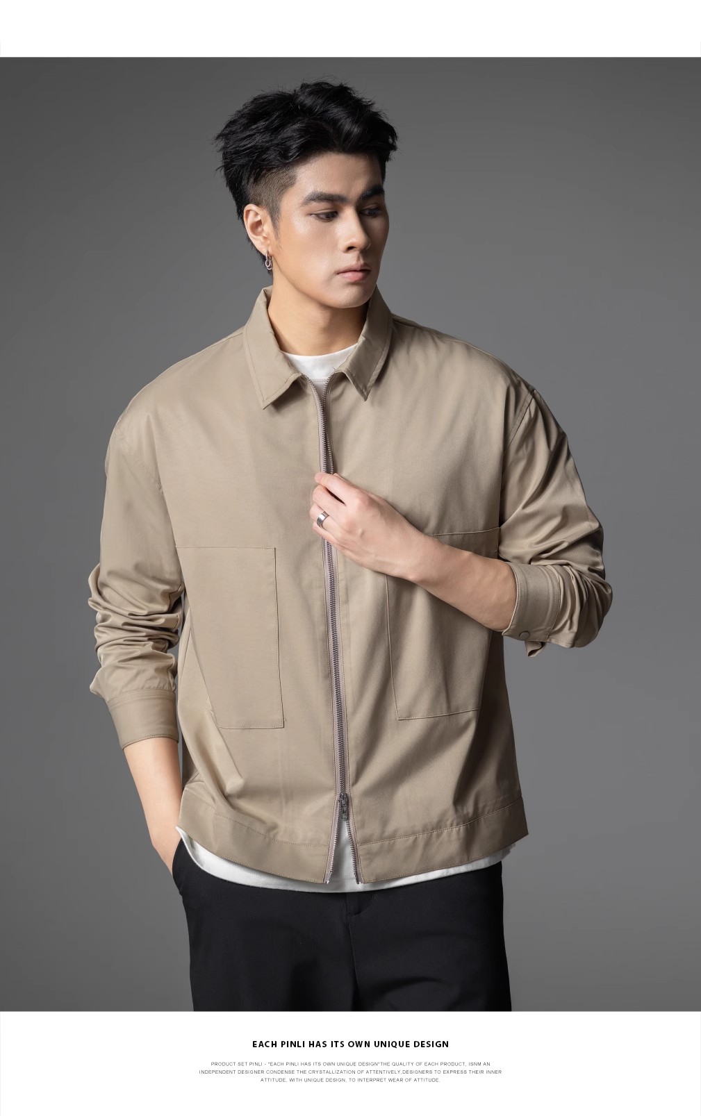 PINLI品立春季新品男士通勤休闲夹克外套干部风宽松茄克上衣GD253104072