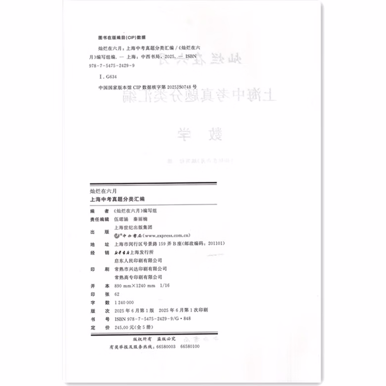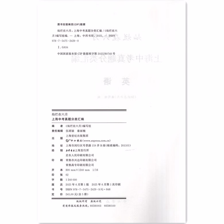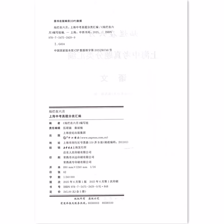 上海中考真题分类汇编.灿烂在六月.2025年版.语文.数学.英语.物理.化学