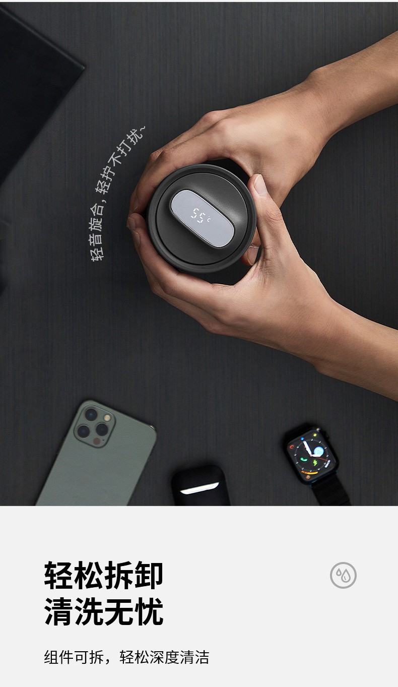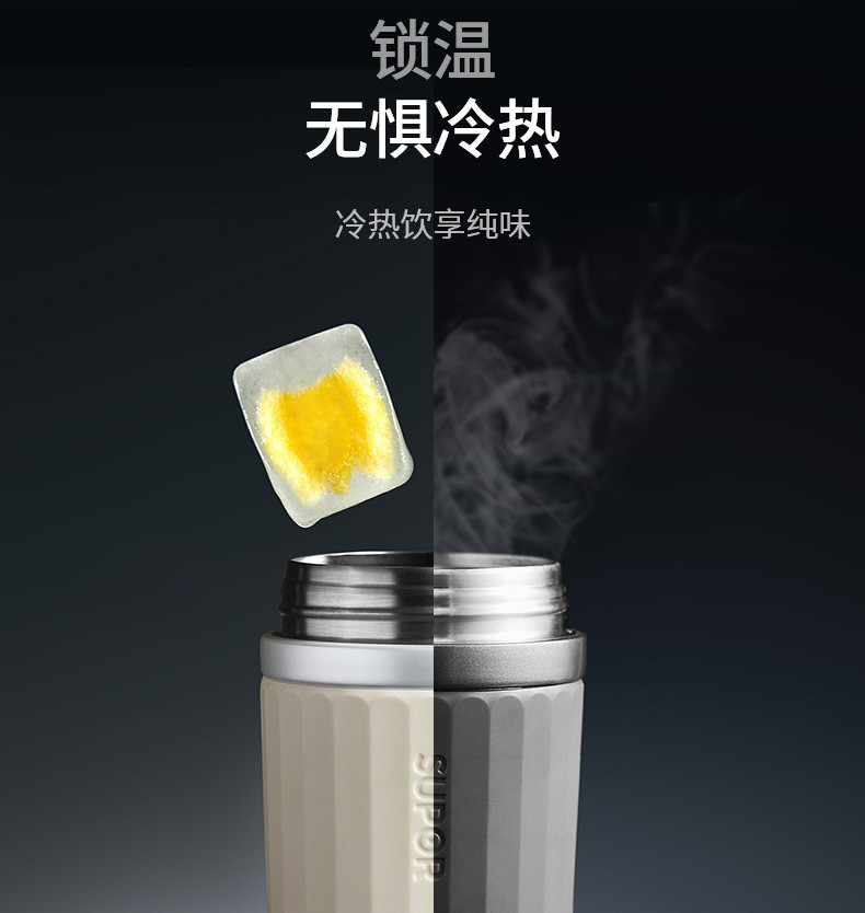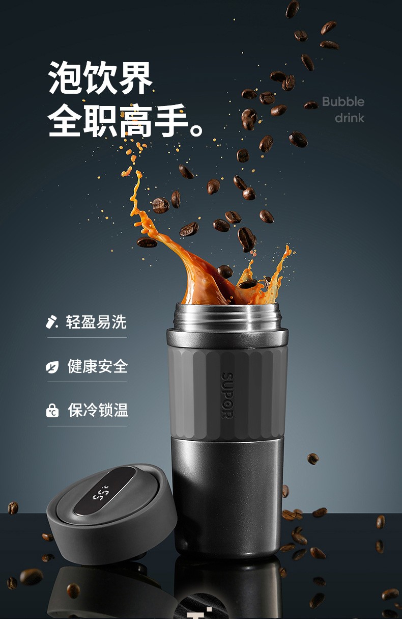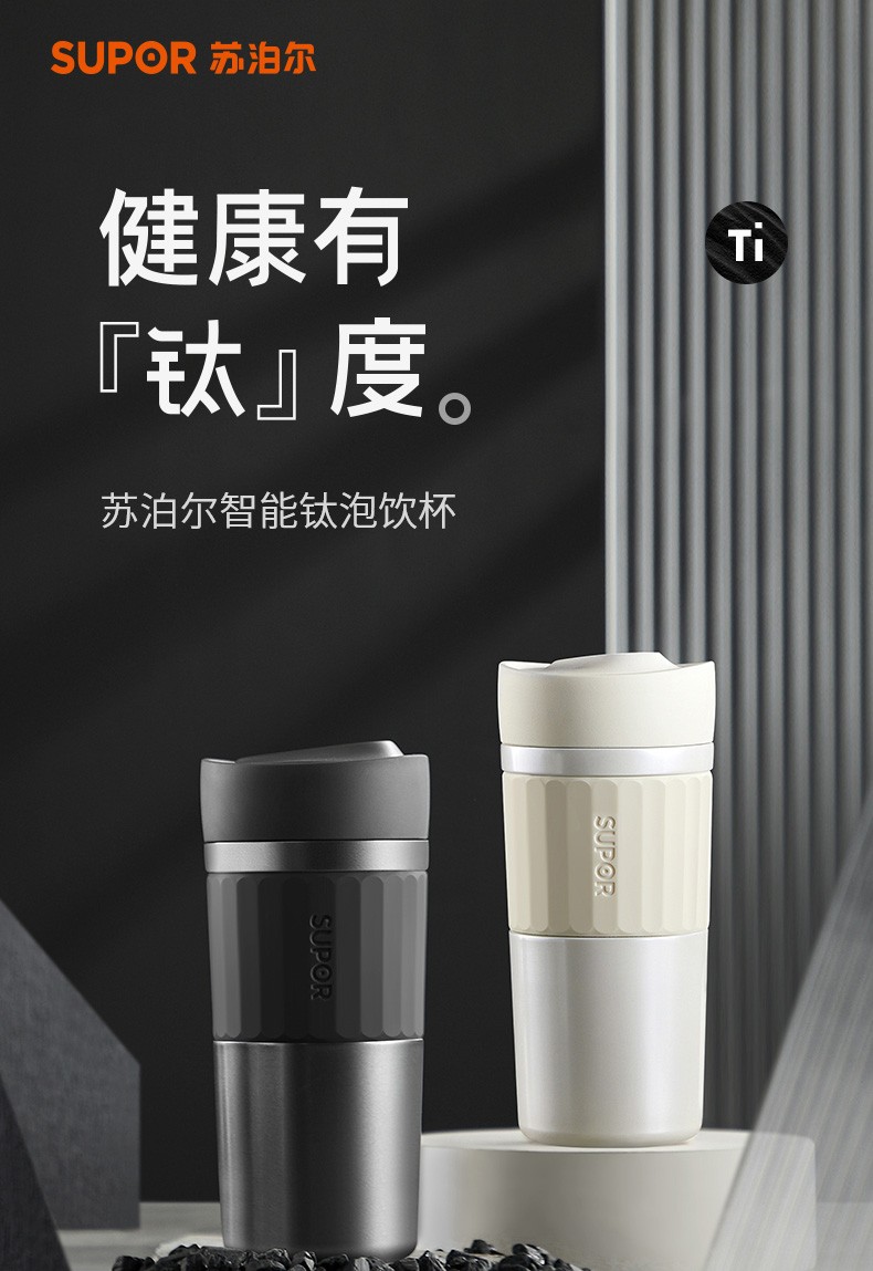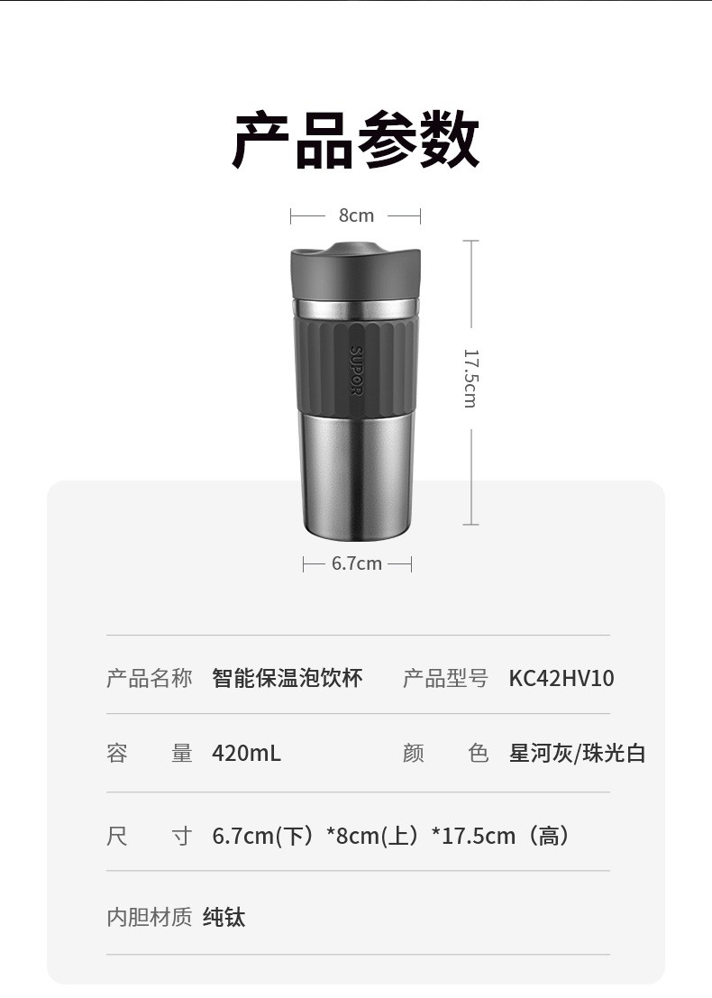 苏泊尔(SUPOR)保温杯智能显温纯钛水杯男女士咖啡杯商务办公室泡茶杯大容量便携带茶滤随身杯子 礼盒装 42HV10珠光白 420ML