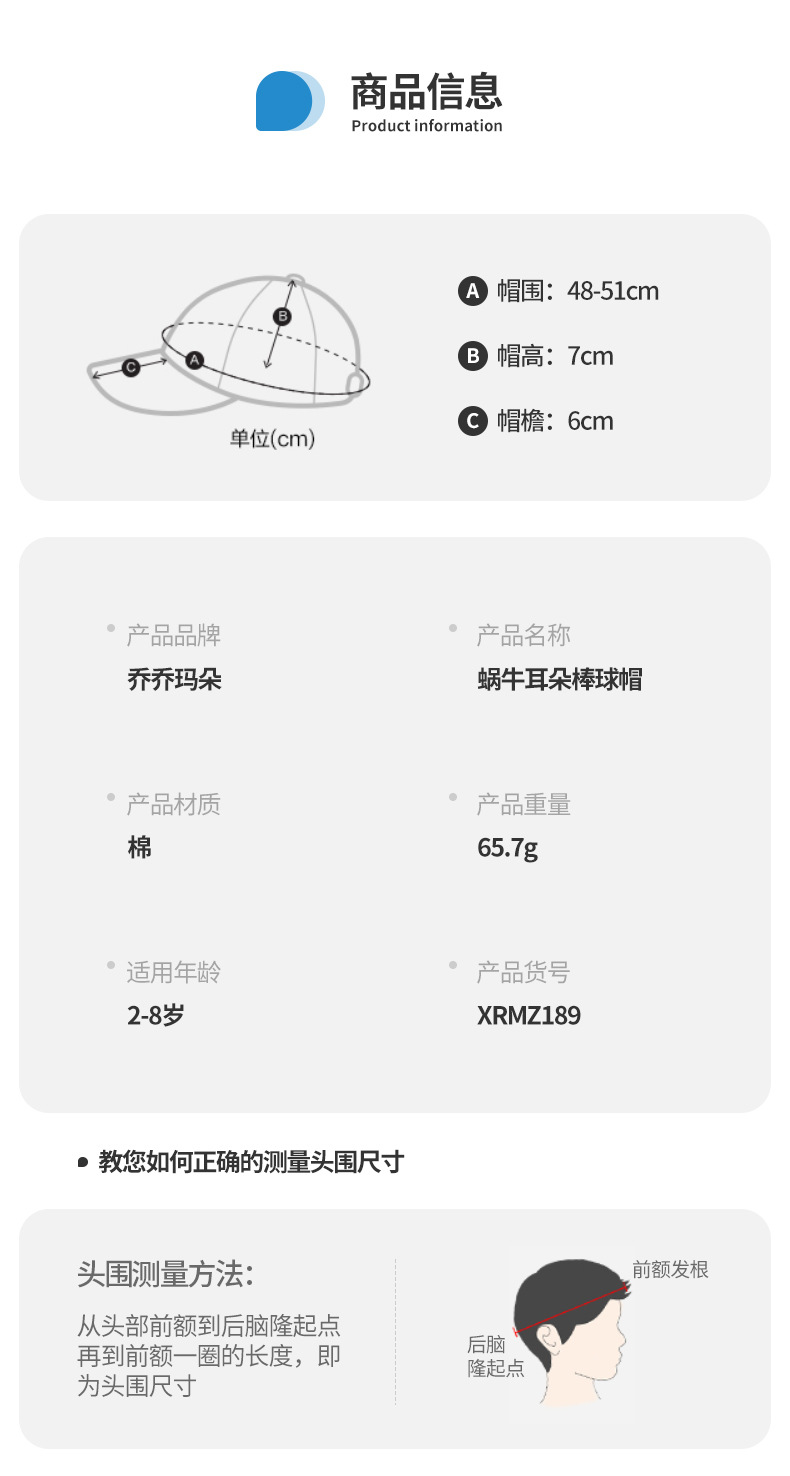 【蜗牛耳朵棒球帽】韩版春秋贴布可爱卡通棒球帽男女儿童休闲百搭防晒防晒鸭舌帽