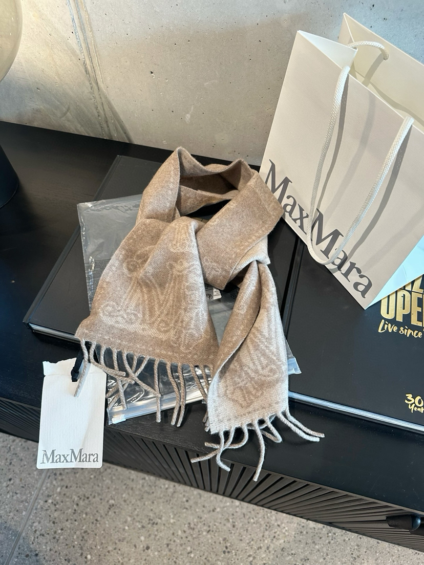 在途国现MaxMara超新限量发售款。百分百羊绒。烟驼色999元配购物袋