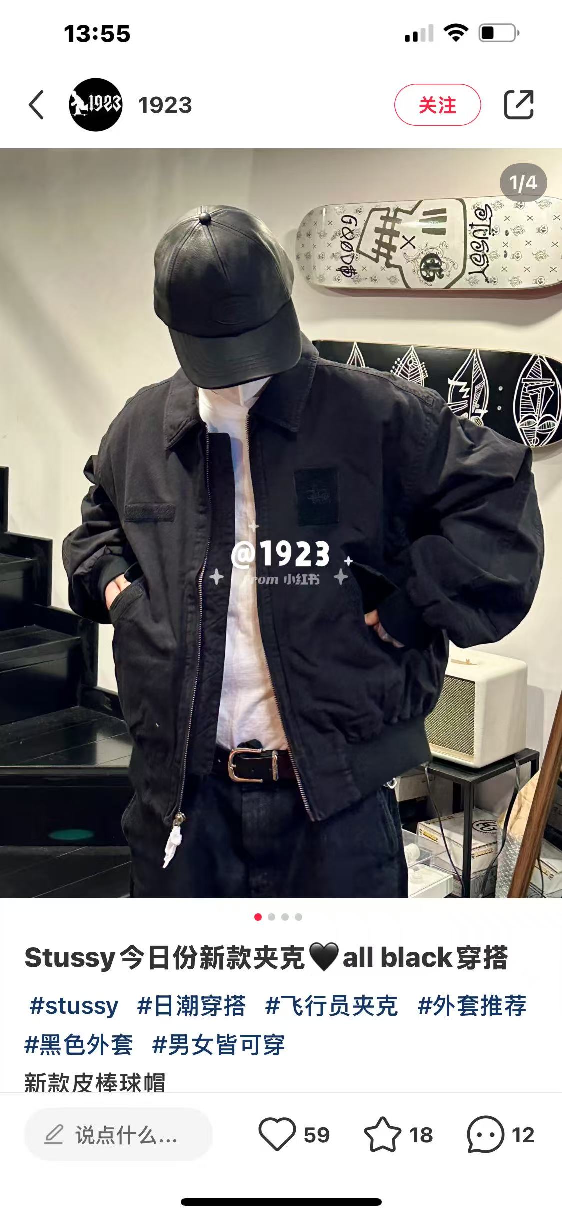 秋冬款!深圳贸易公司出口订单,STUSSY/斯图西 SS25 翻领徽标飞行员教练夹克