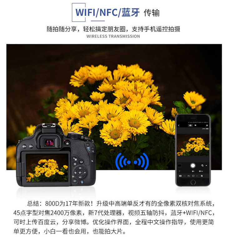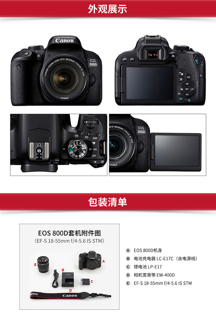 【佳能微单相机】Canon/佳能EOS 800D(18-55mmSTM)套机高清入门级照相机单反相机