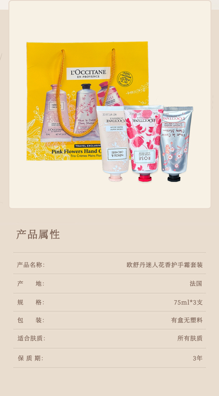 品名:欧舒丹粉嫩迷人花香润手霜套装