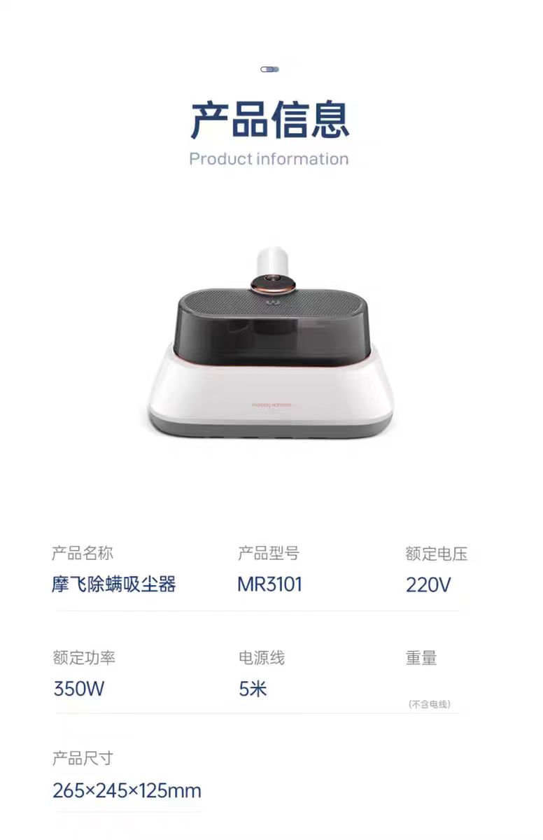 10楼 摩飞 除螨吸尘器 MR3101 吊牌价599元 活动价499元
