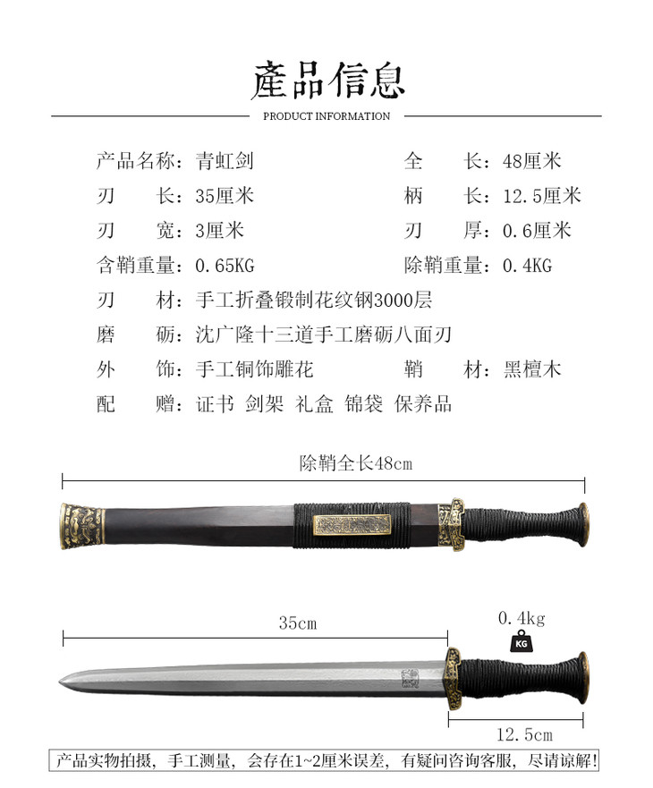 青虹短剑 汉剑 唐剑 龙泉沈广隆宝剑 传统宝剑 未开刃