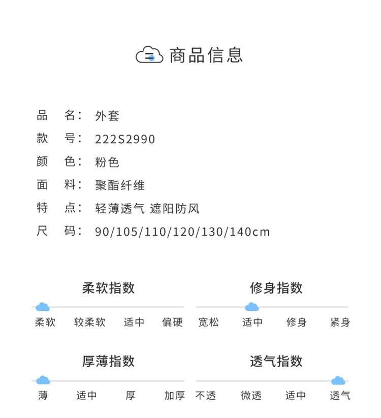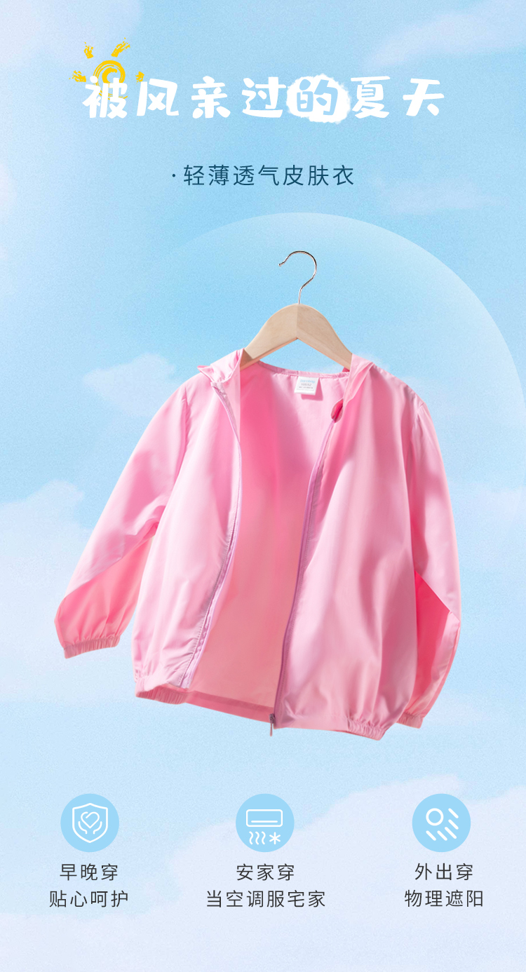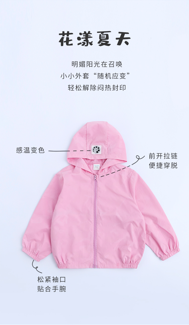 贝贝怡夏季新品儿童时尚潮流女童温感皮肤衣薄外套