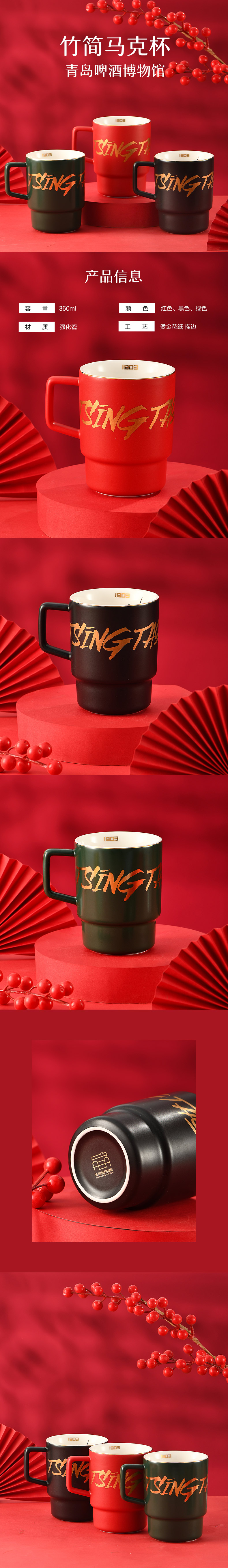 青岛啤酒博物馆 竹简创意马克杯简约陶瓷杯咖啡杯 青岛啤酒 官方文创