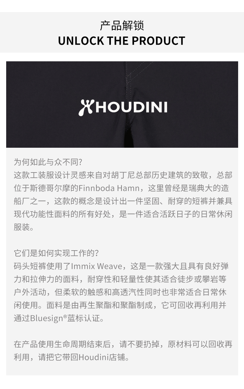 HOUDINI胡丁尼Dock Shorts 码头 女户外弹力快干休闲徒步短裤190864