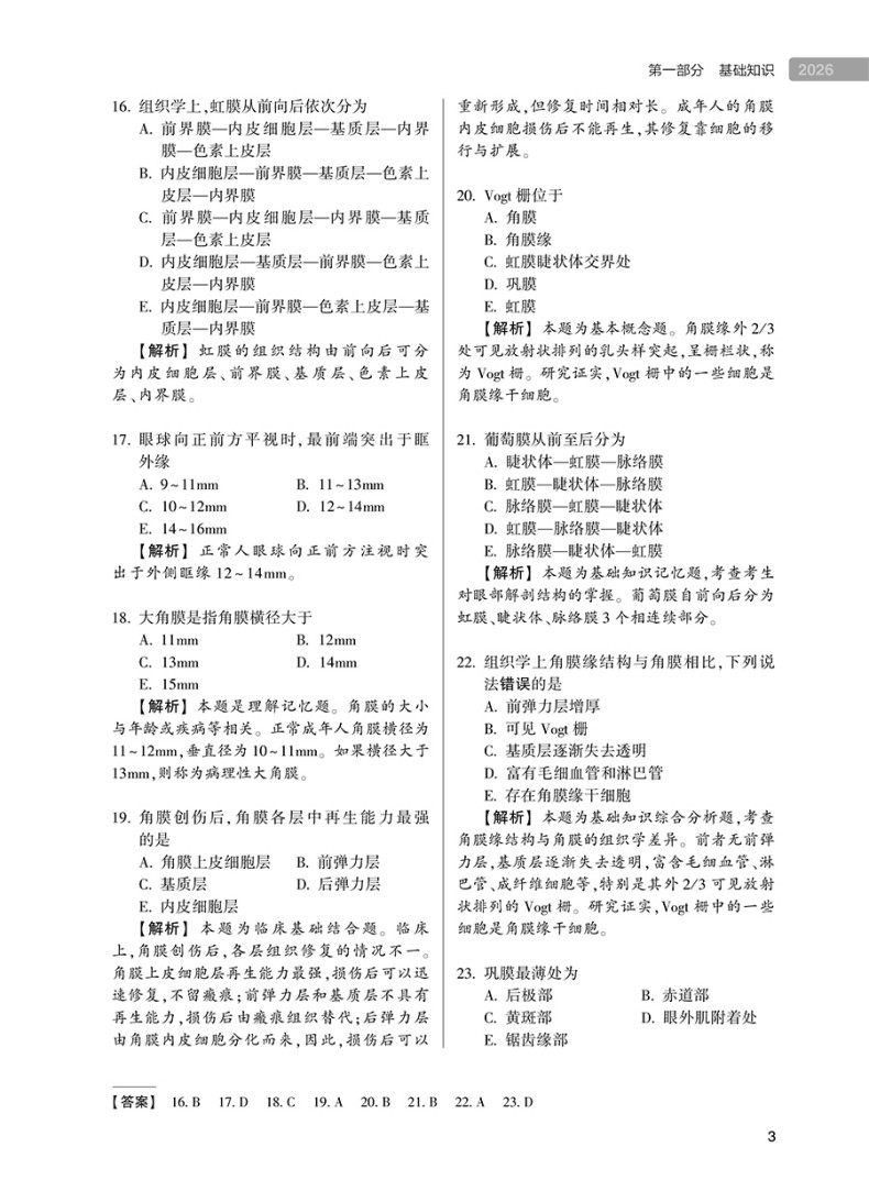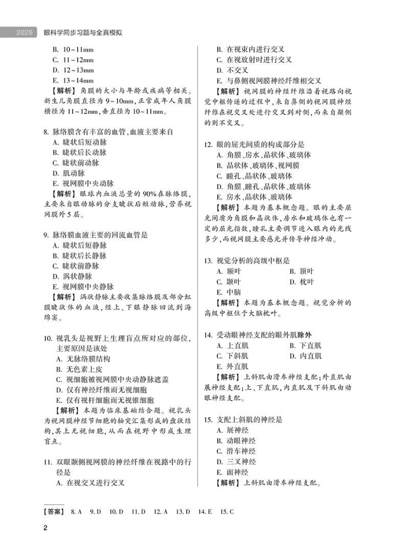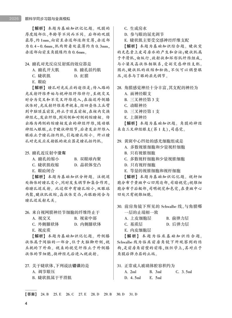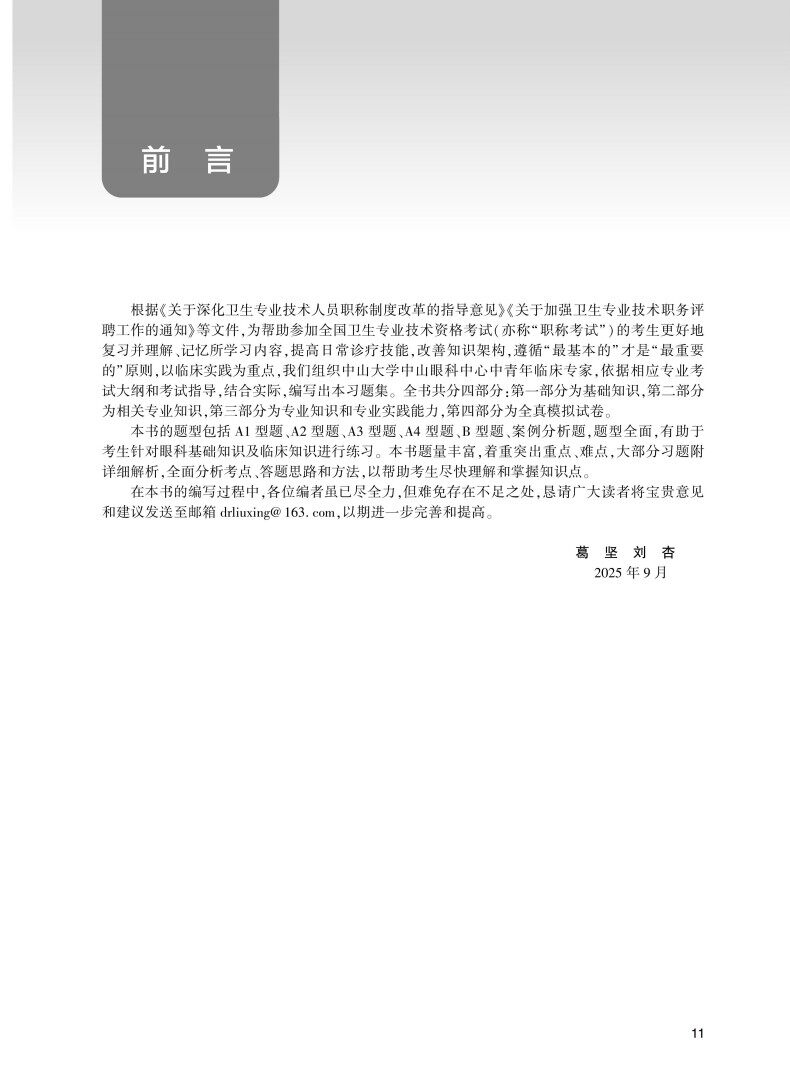 2026眼科学同步习题全真模拟 全国卫生技术专业资格中级职称考试