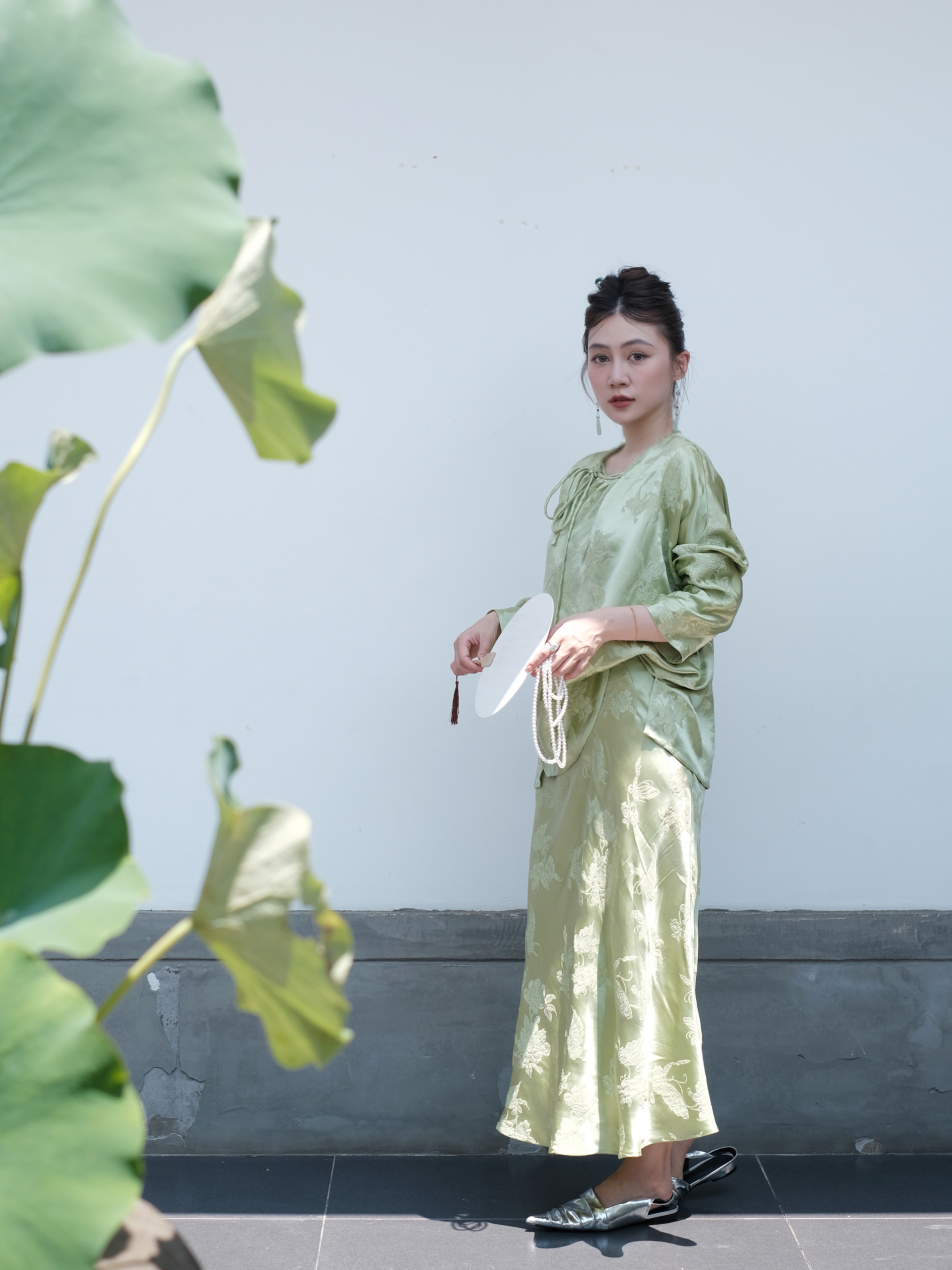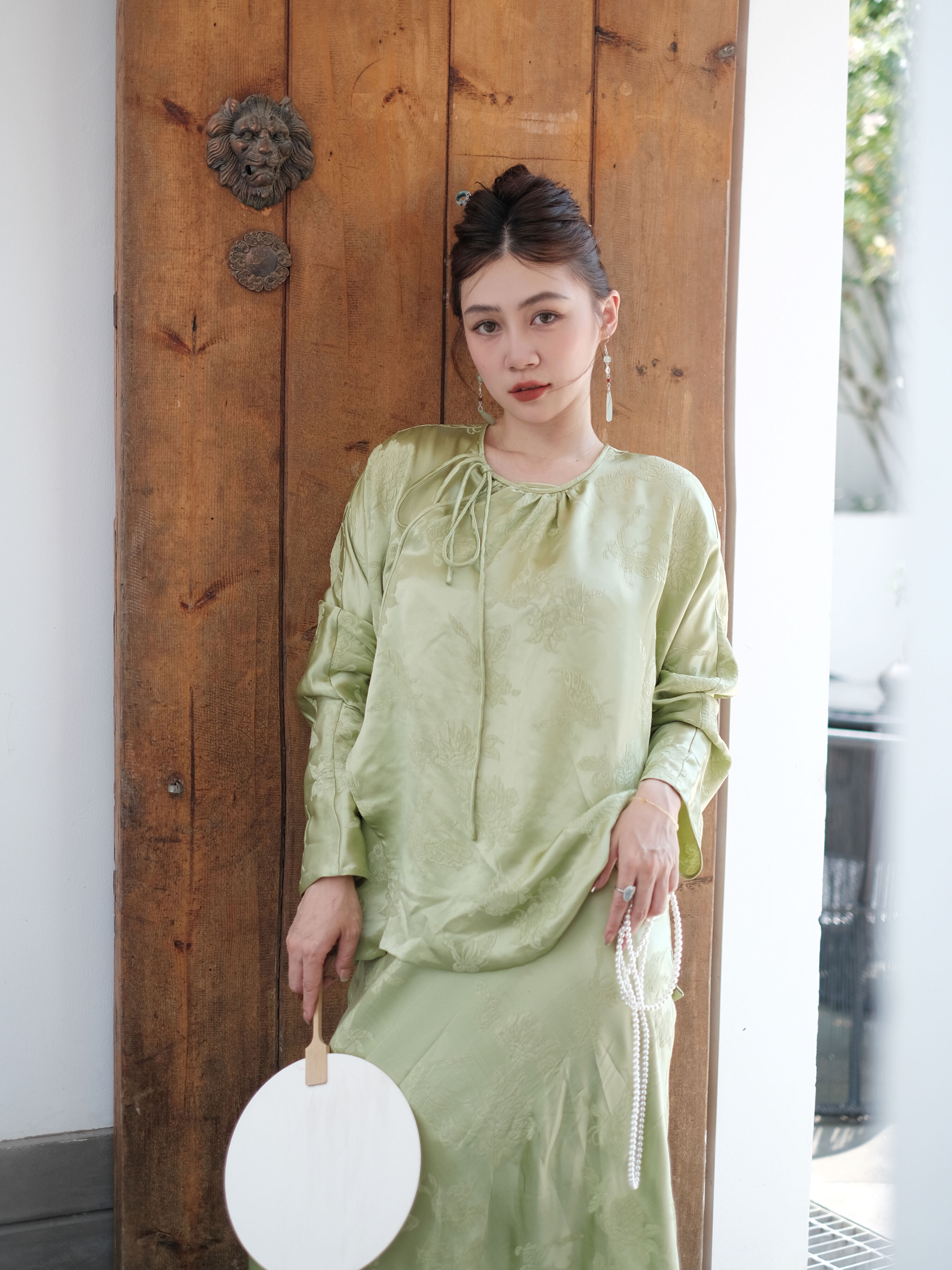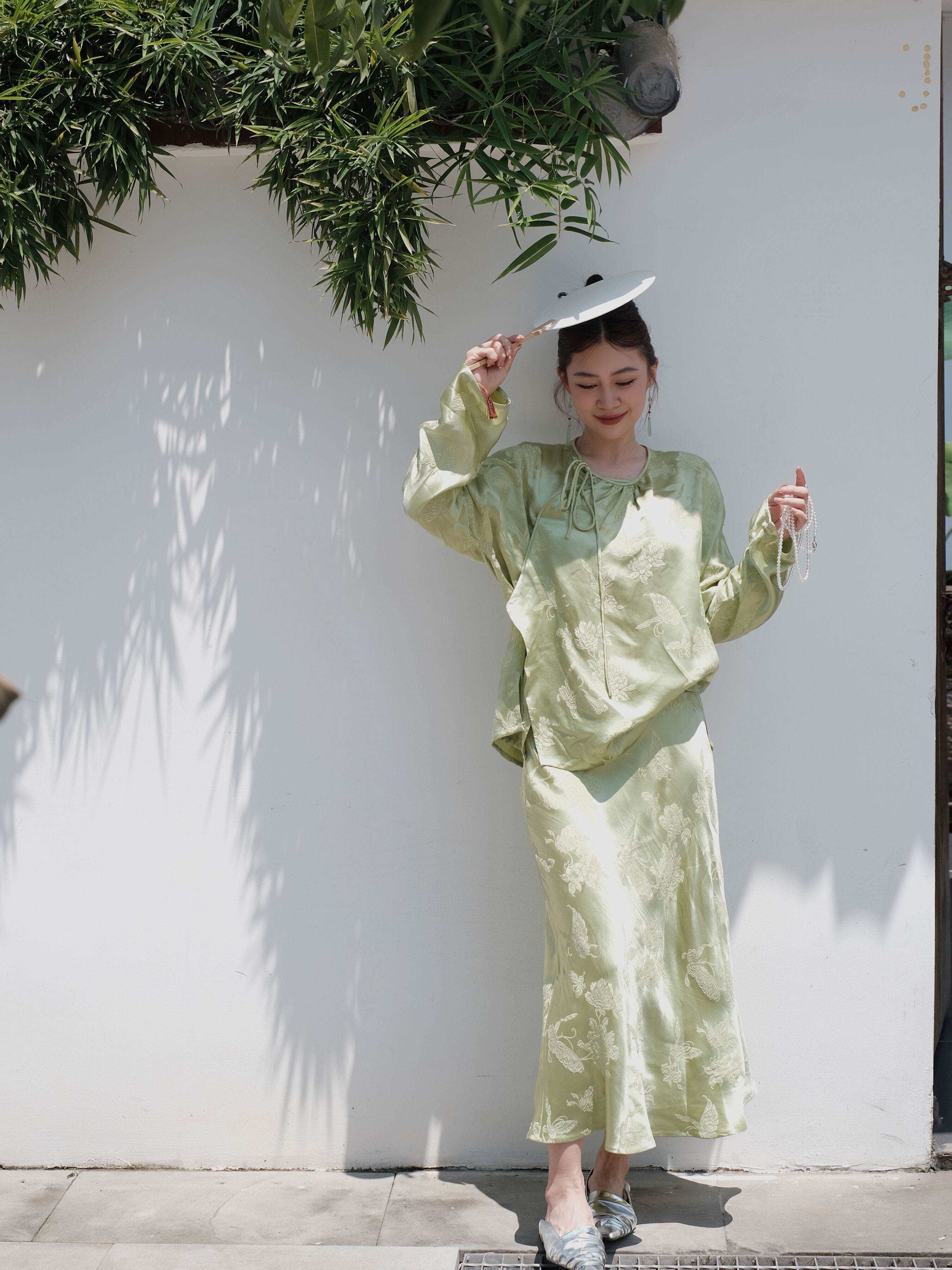 盛唐婧 |桃夭粉新中式国风提花上衣