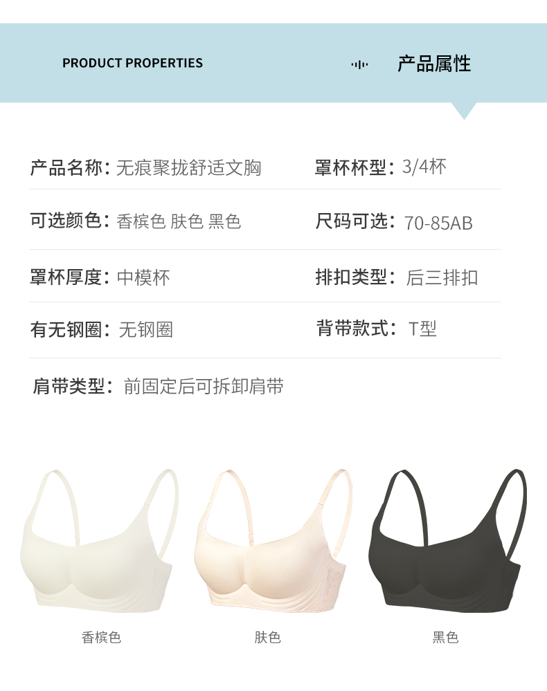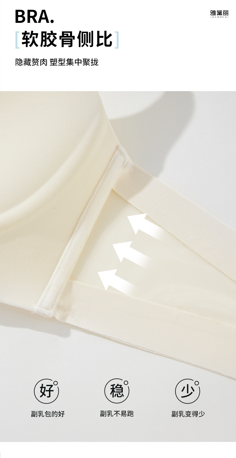 雅黛俪内衣女无痕舒适聚拢固定一体杯文胸无钢圈舒适光面美背胸罩