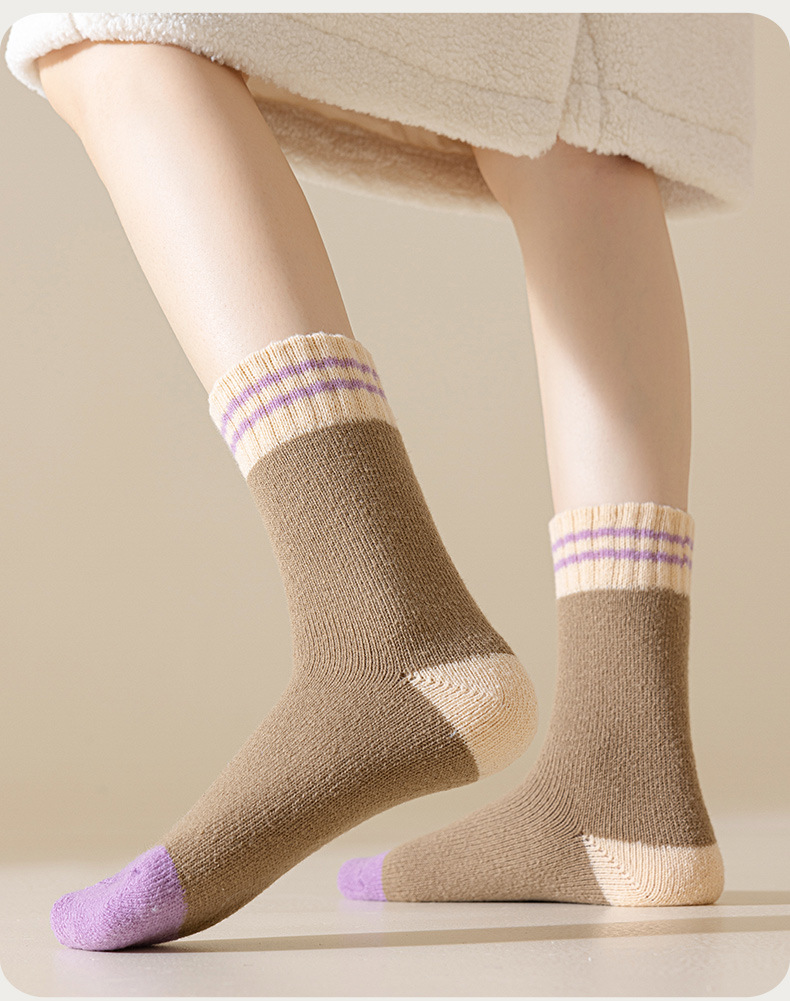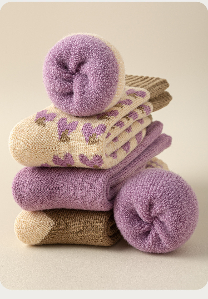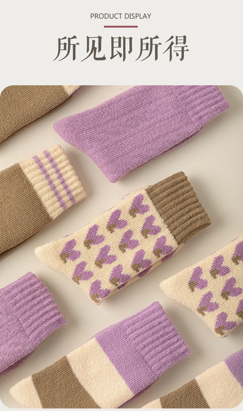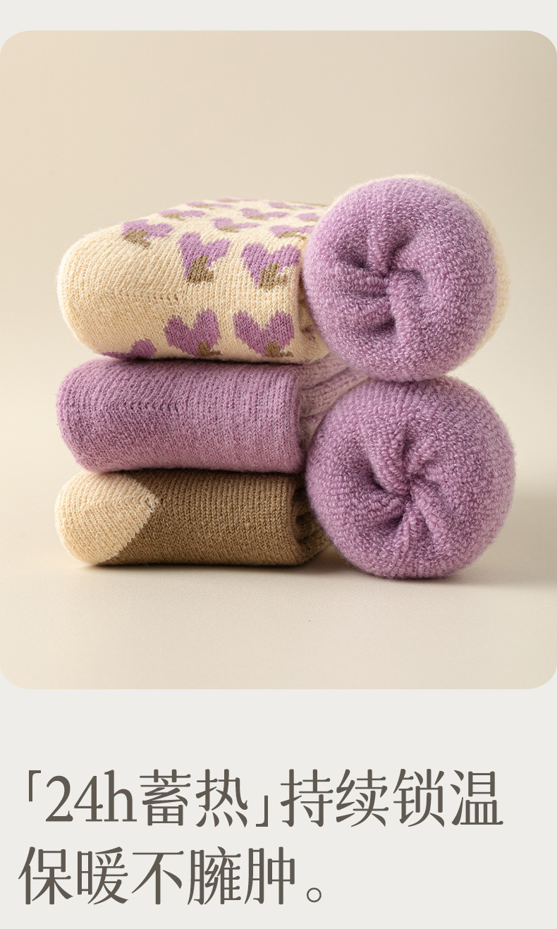 【10双更值❗️超暖防寒厚绒袜】轻柔软糯,告别寒冷,秋冬款紫色爱心保暖袜加厚款袜子女中筒袜冬季纯色毛圈袜