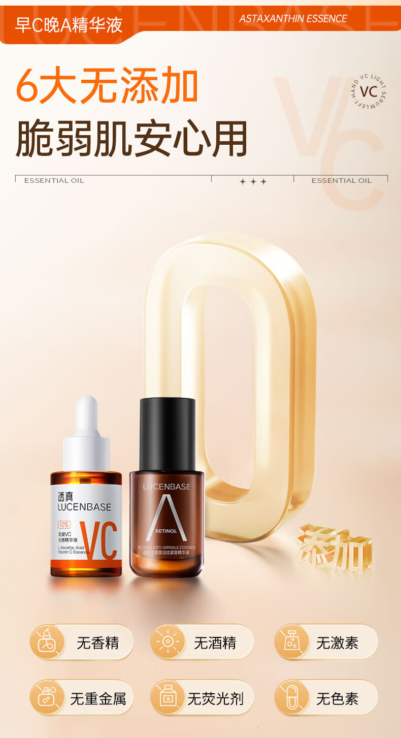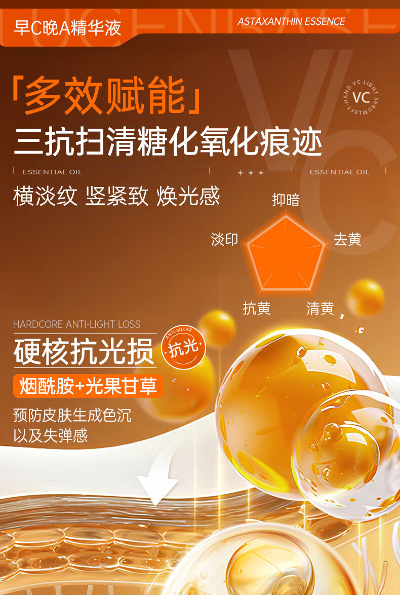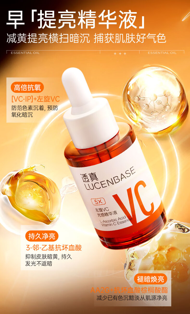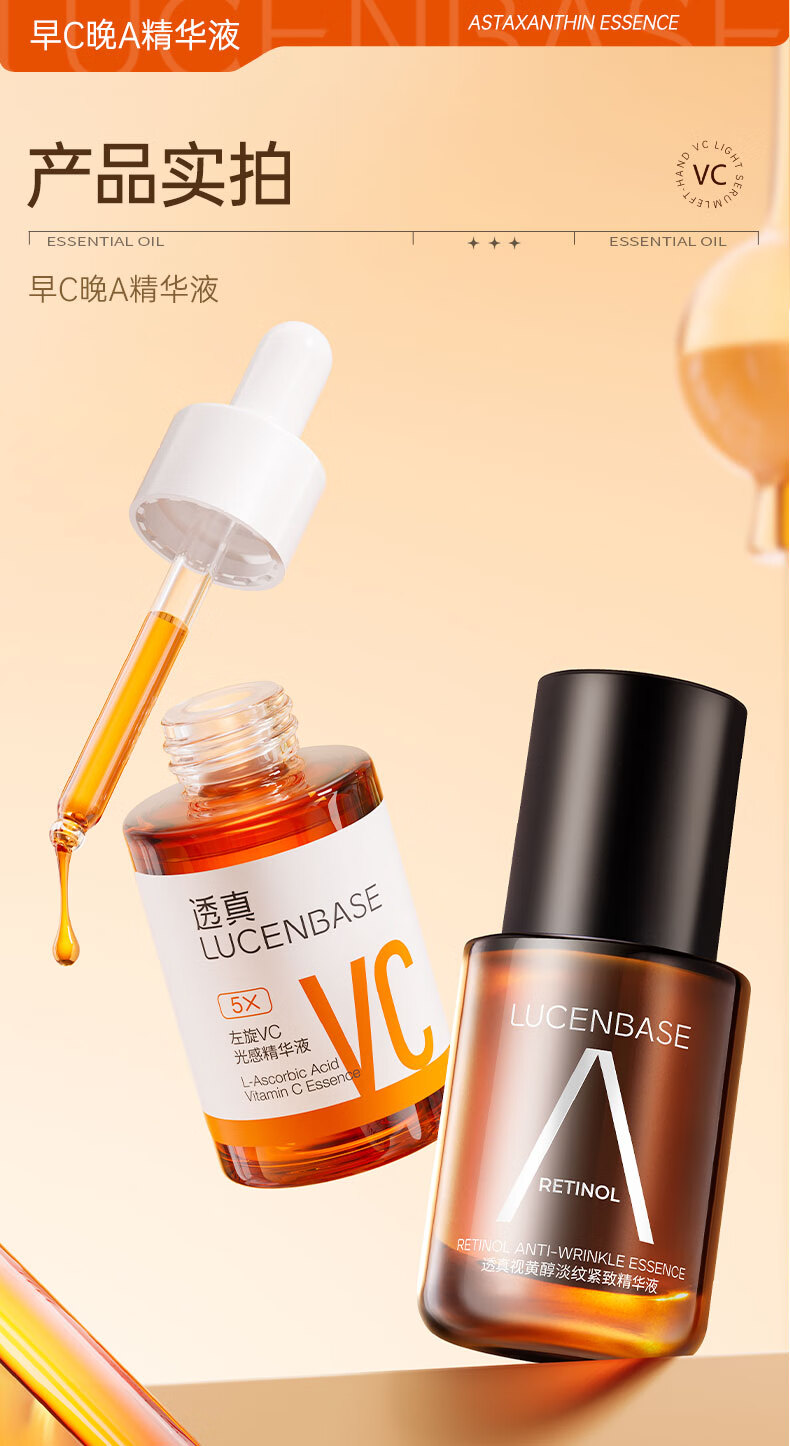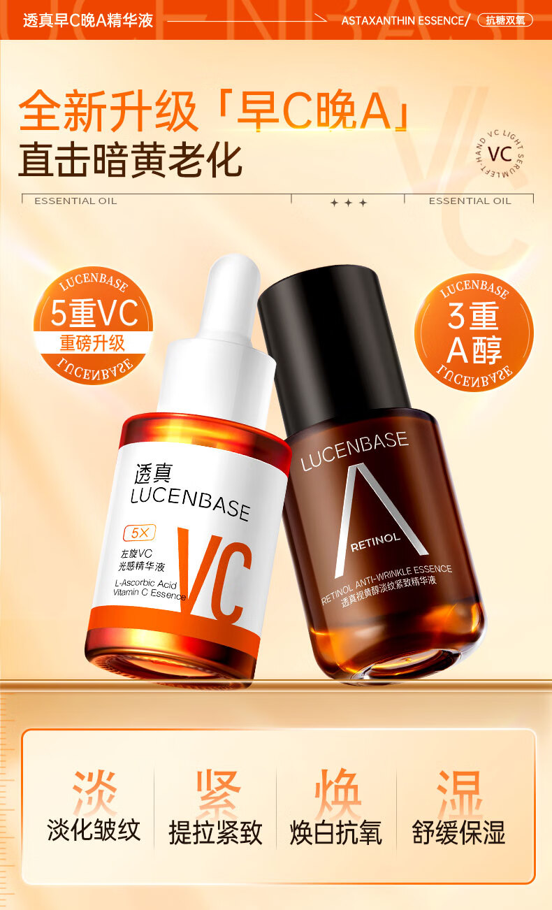 透真早c晚a精华液 左旋vc减黄提亮A醇紧致淡纹全分子量玻尿酸双抗精华