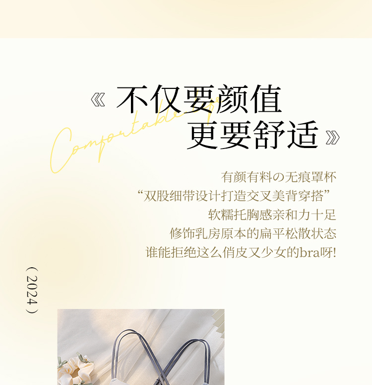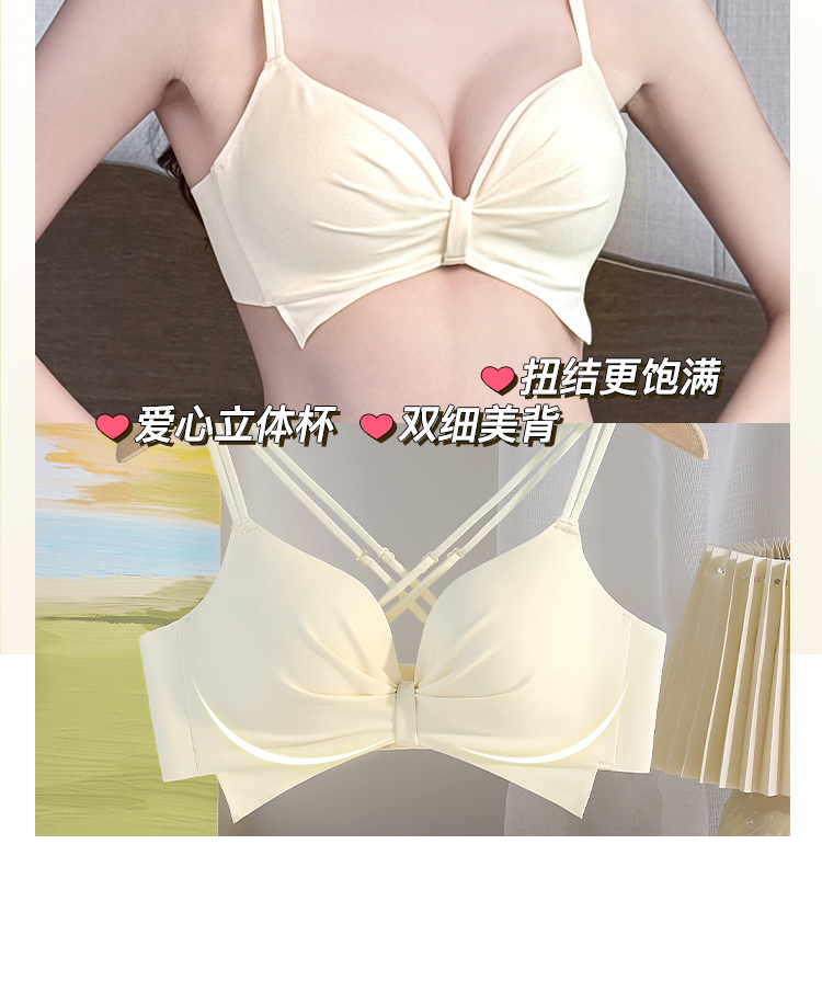 小胸聚拢美背纯欲蝴蝶结内衣女聚拢显大交叉美背无钢圈文胸罩清云美背