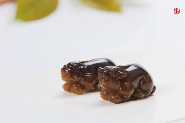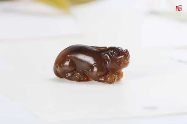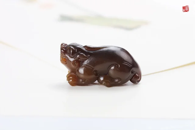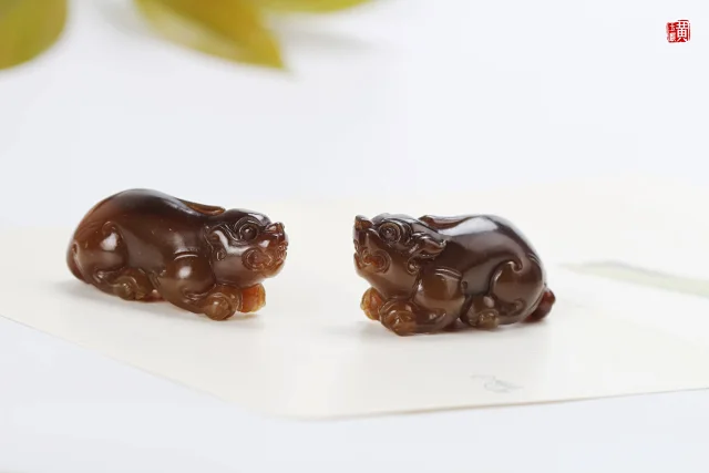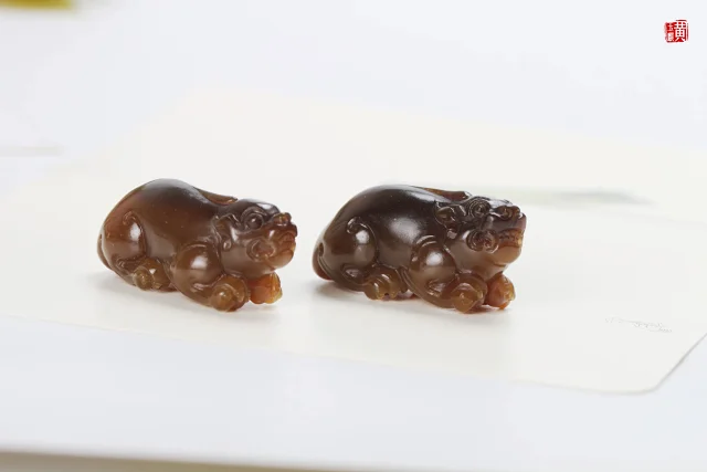 一对和田玉糖玉【貔貅】 配精美挂绳