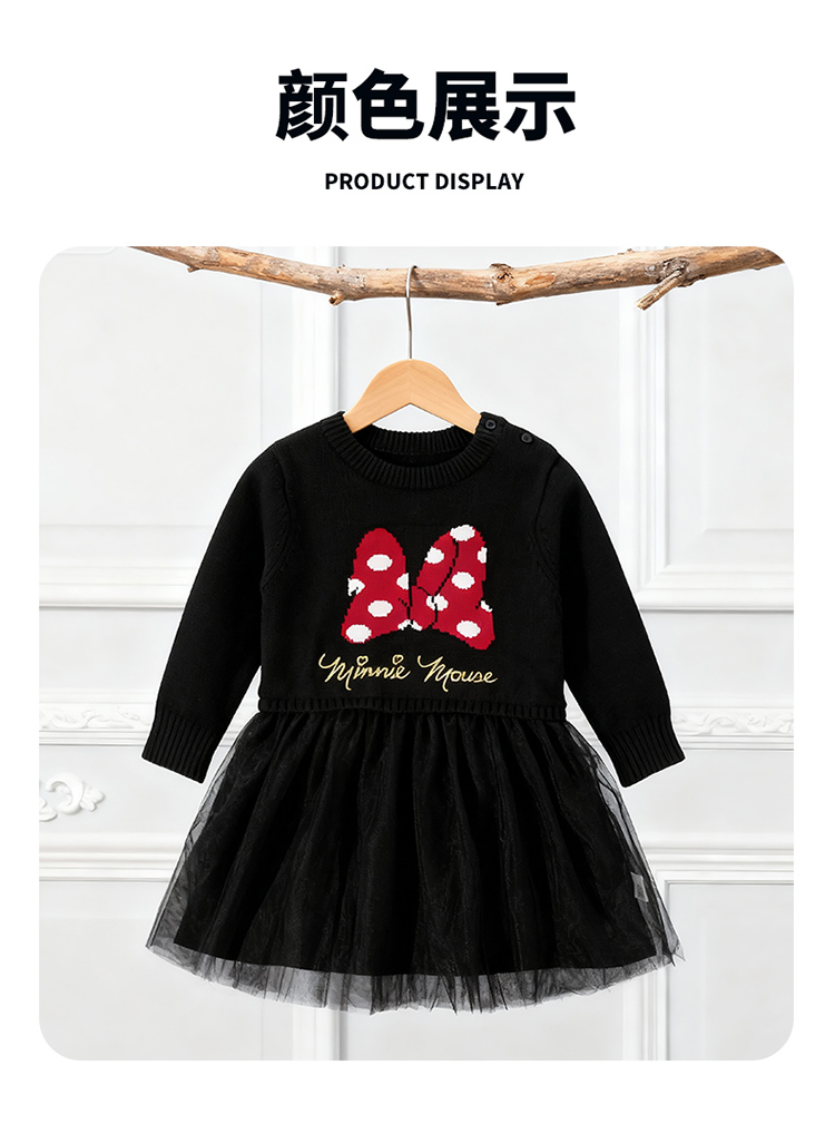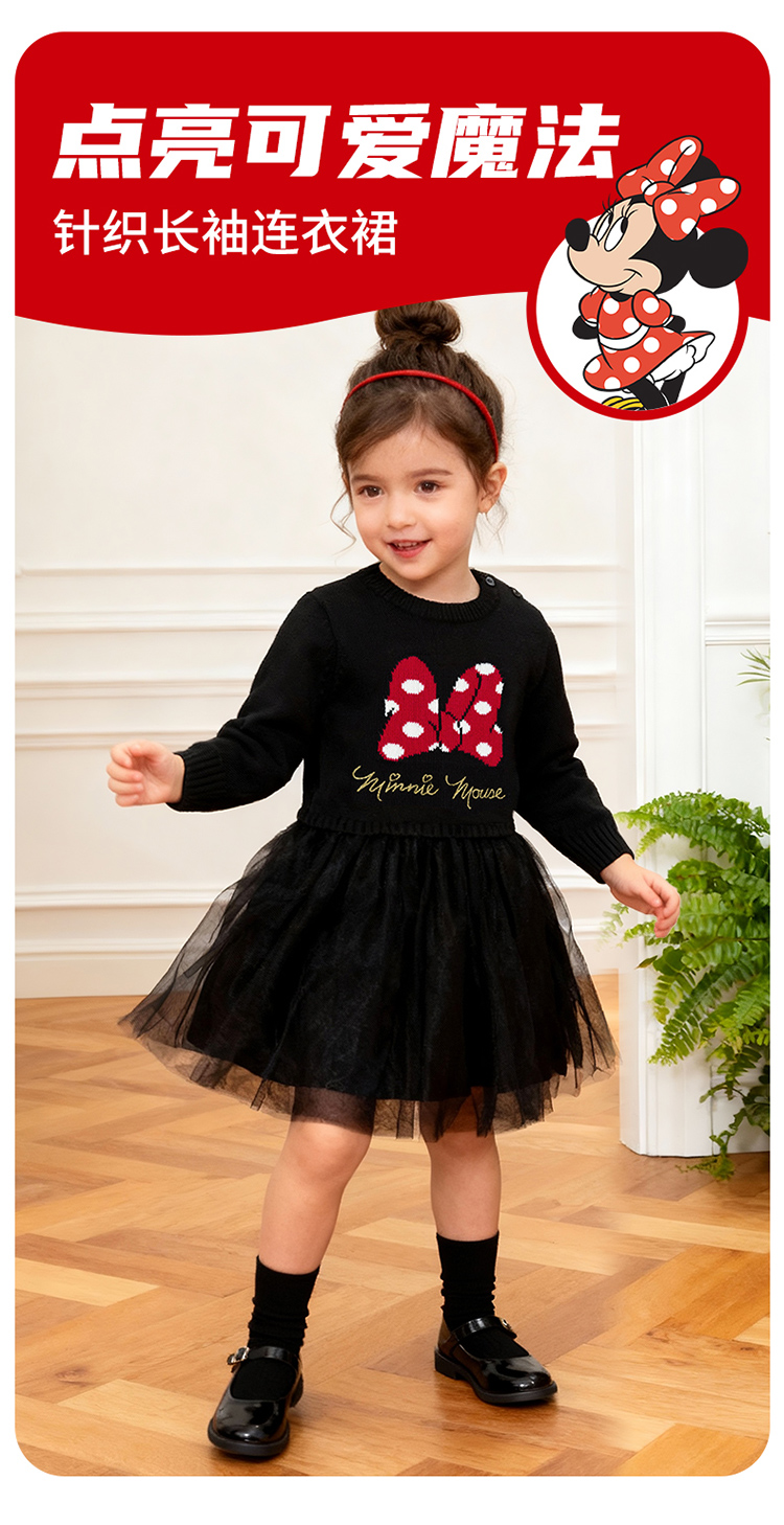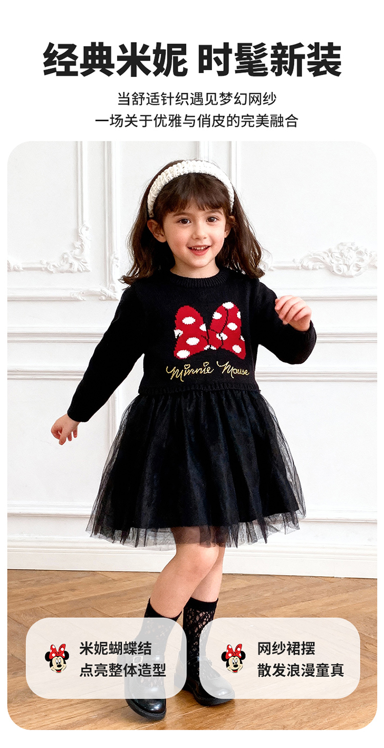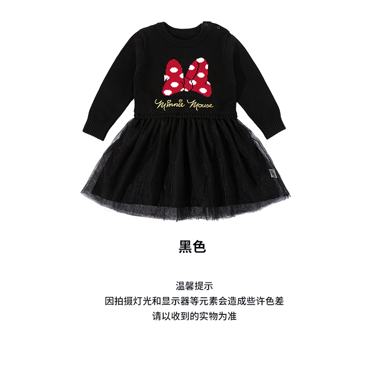 迪士尼儿童女童秋季黑色毛衣长袖连衣裙214DQ0085