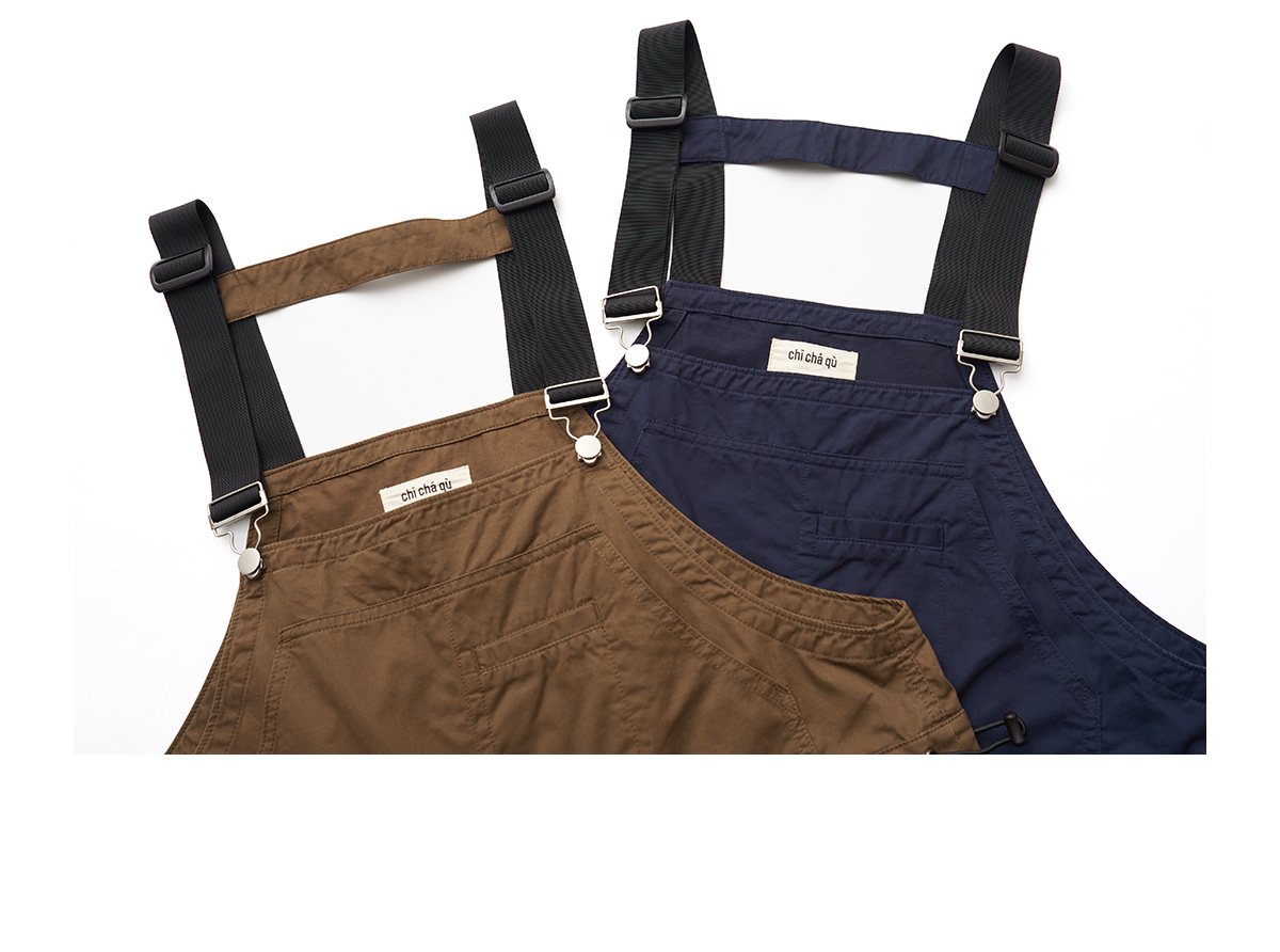 吃茶去chichaqu复古全棉工装背带裤