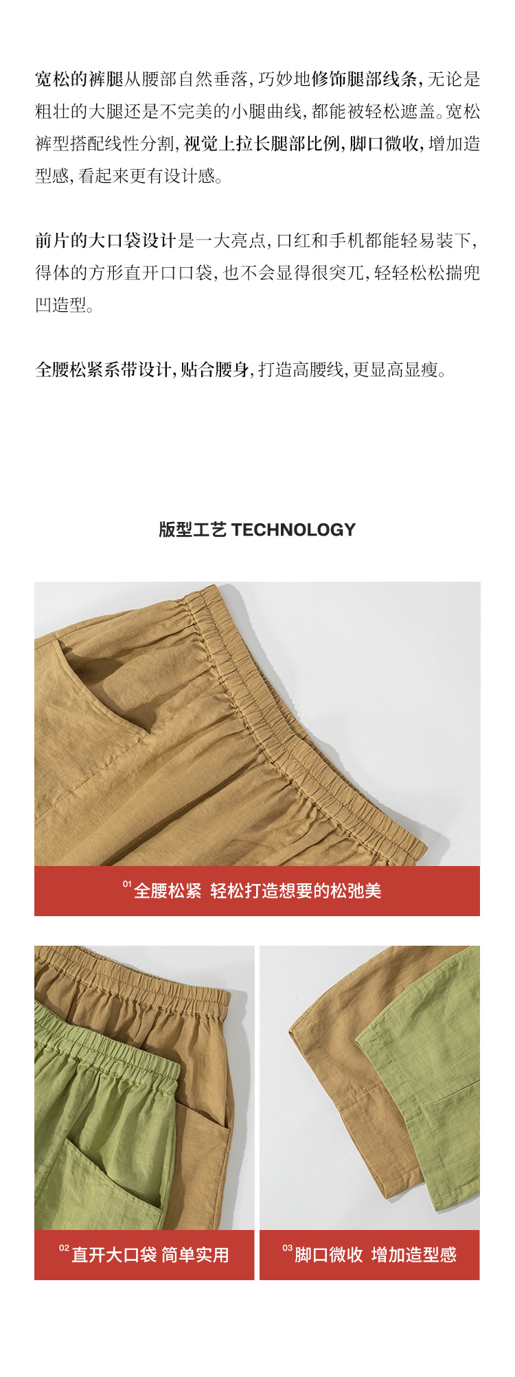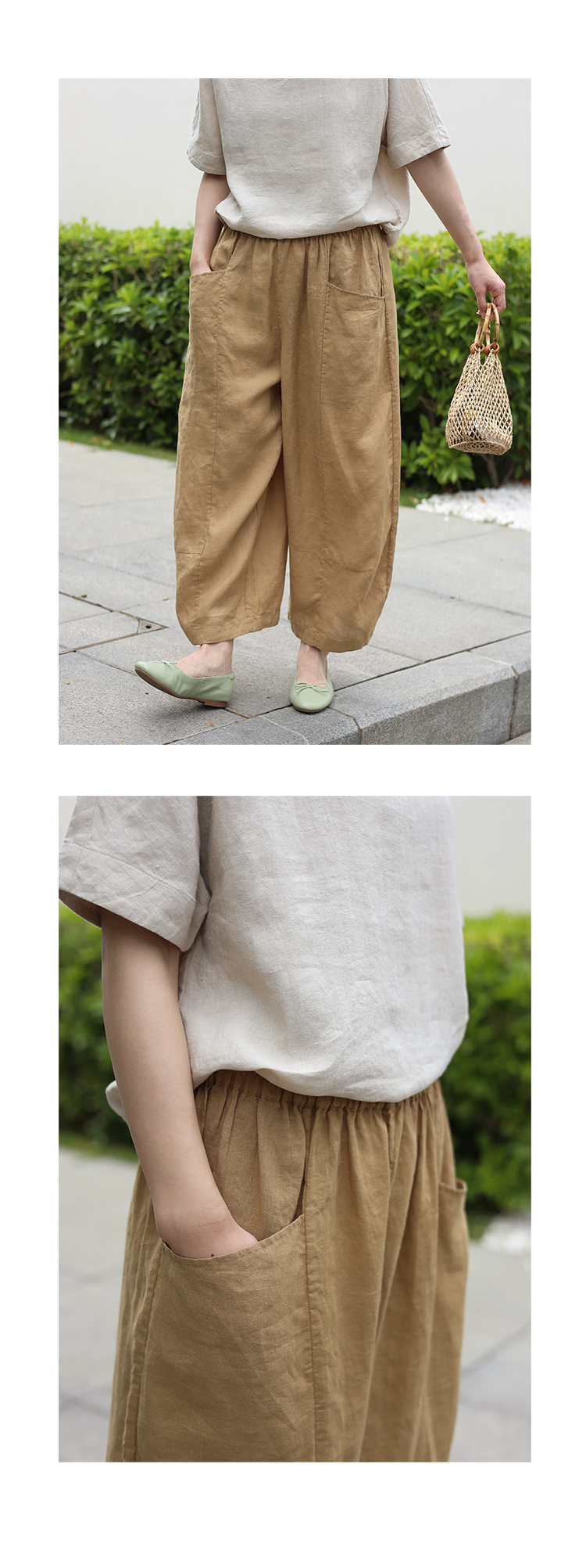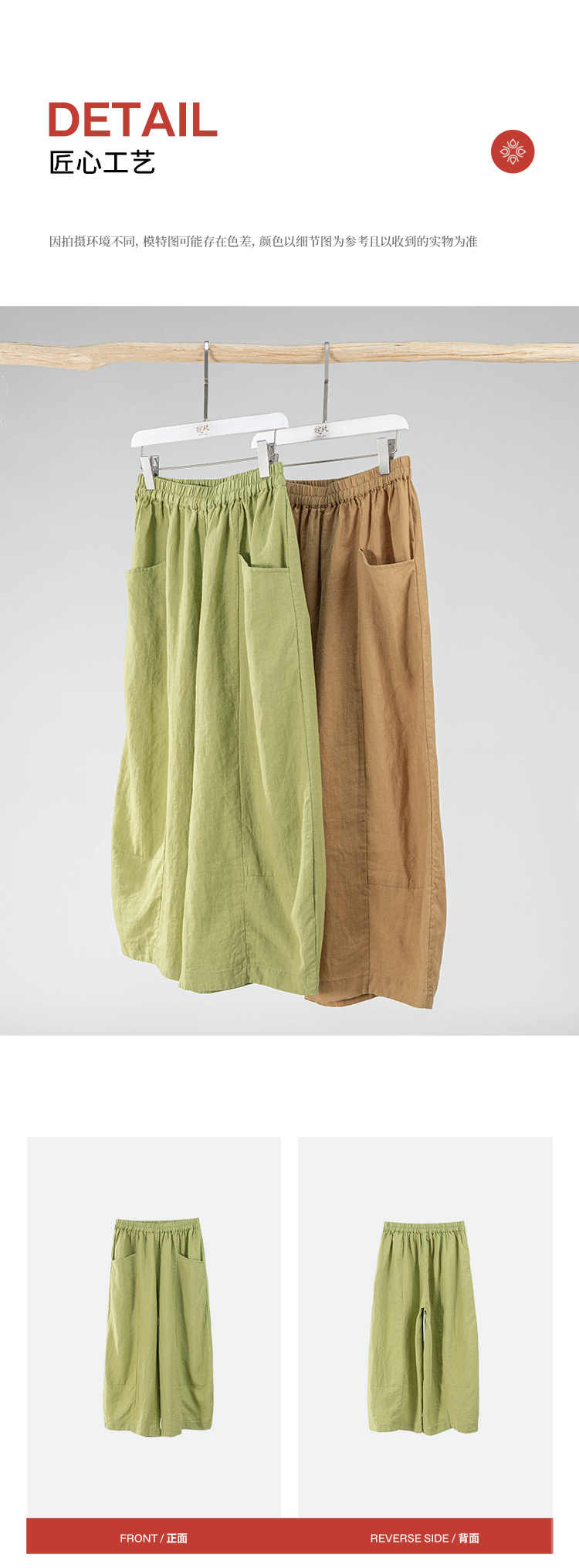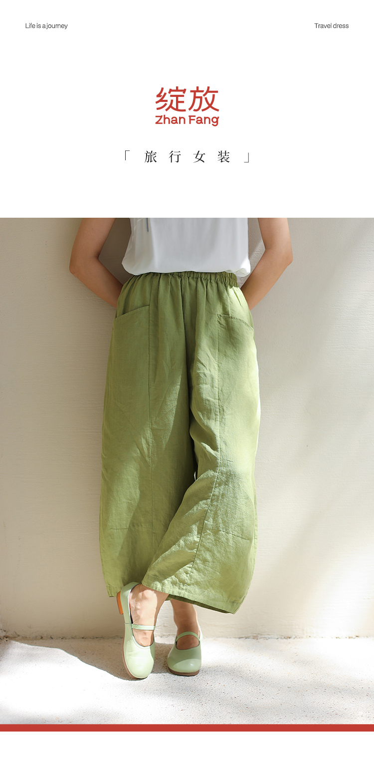绽放199朵/休闲裤大口袋苎麻宽松休闲裤文艺复古简约百搭阔腿裤