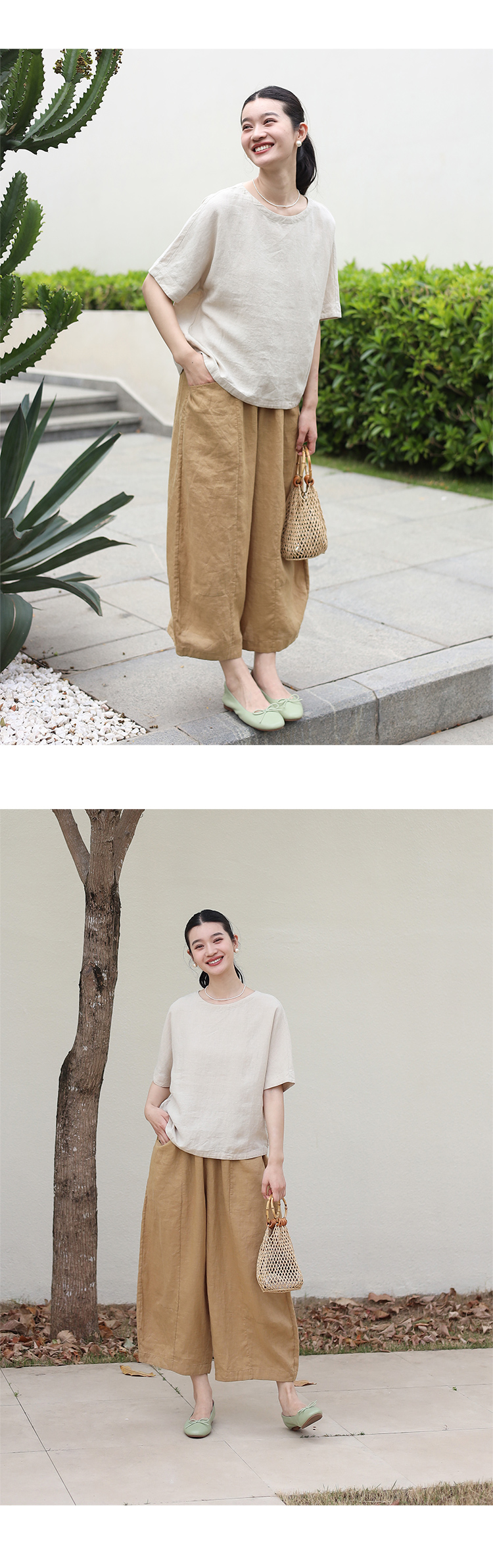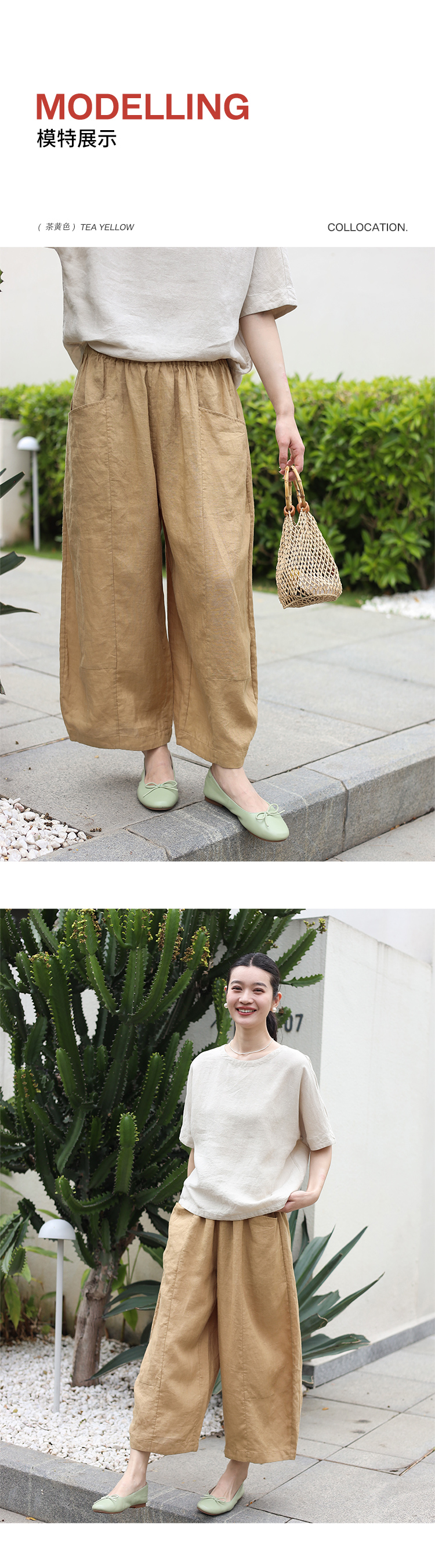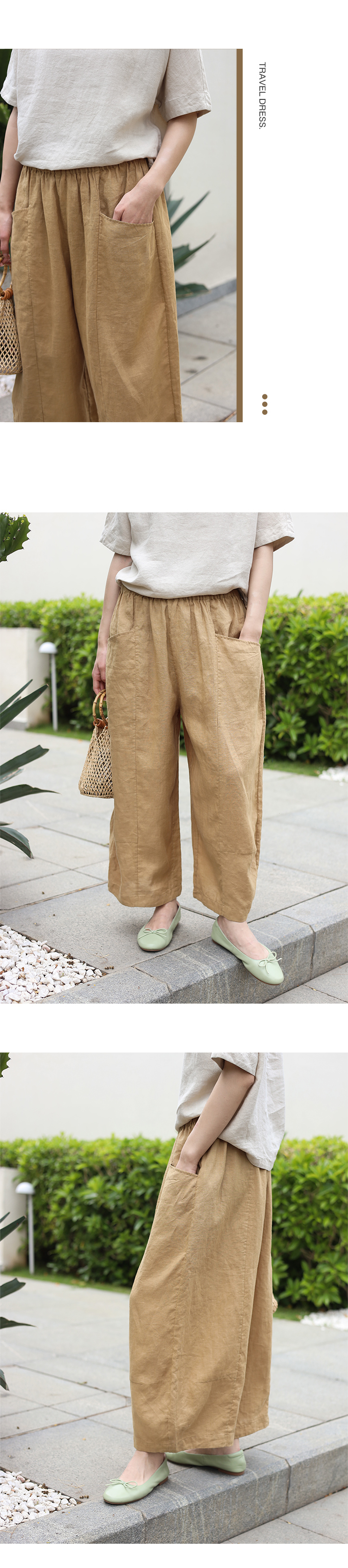 绽放199朵/休闲裤大口袋苎麻宽松休闲裤文艺复古简约百搭阔腿裤