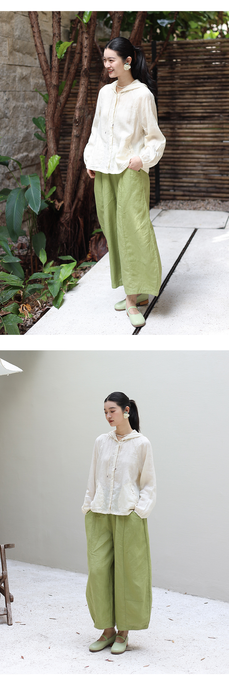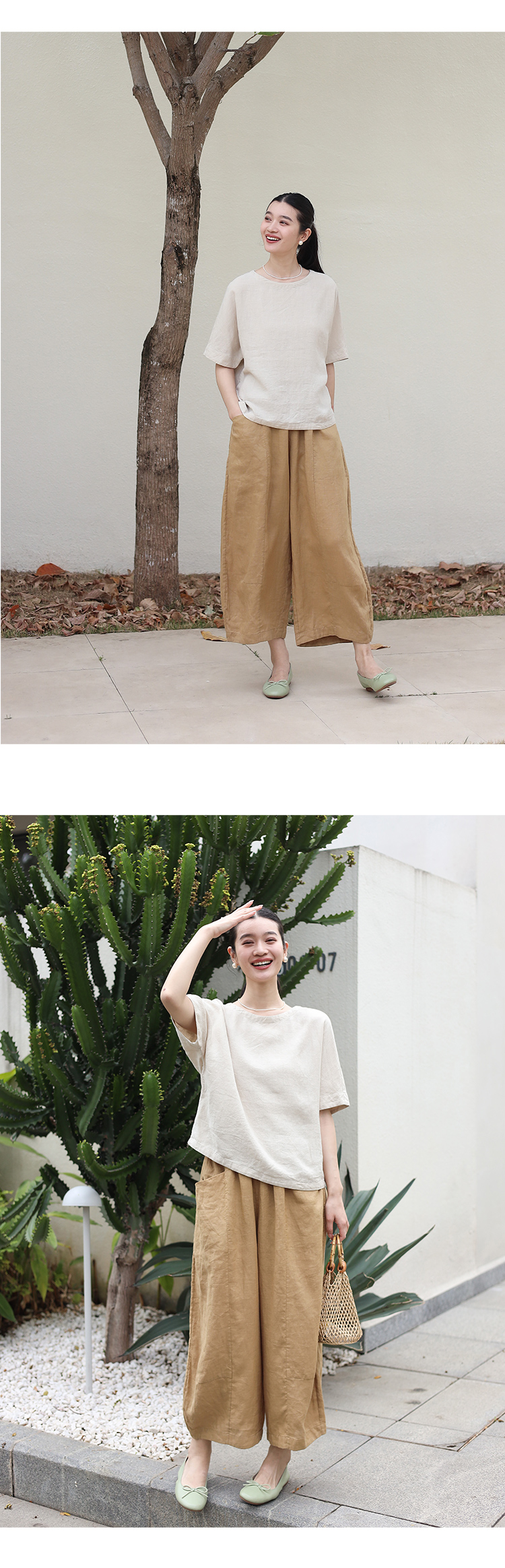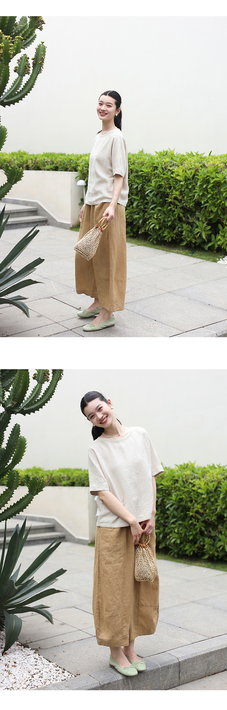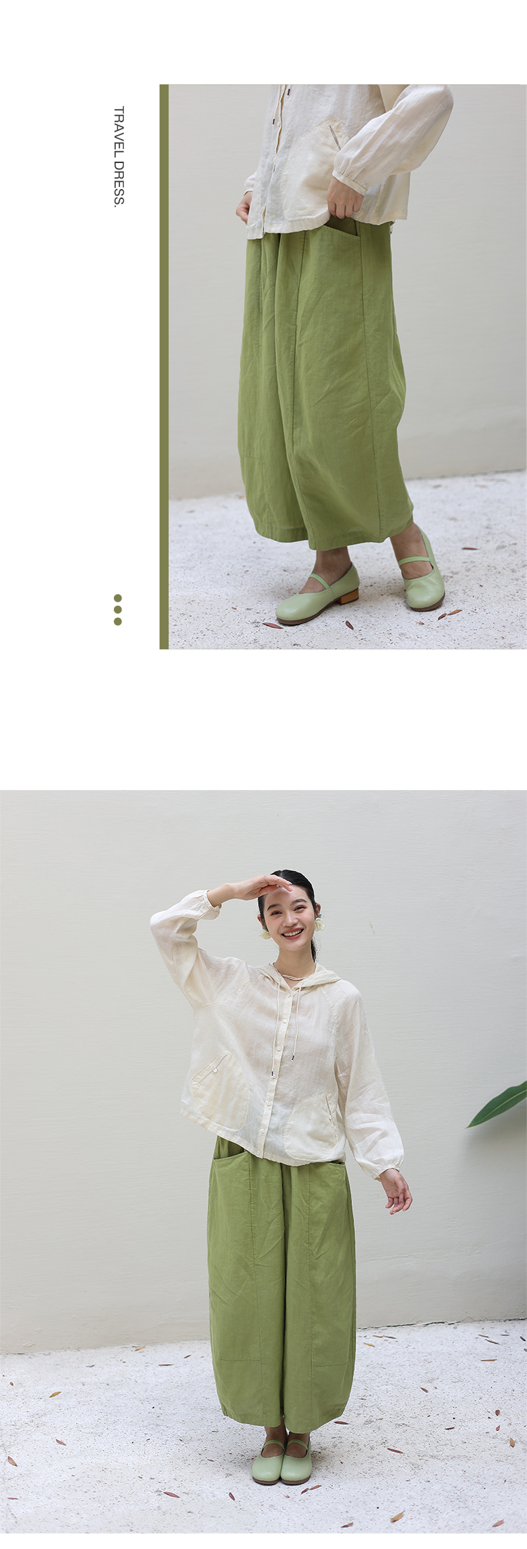 绽放199朵/休闲裤大口袋苎麻宽松休闲裤文艺复古简约百搭阔腿裤