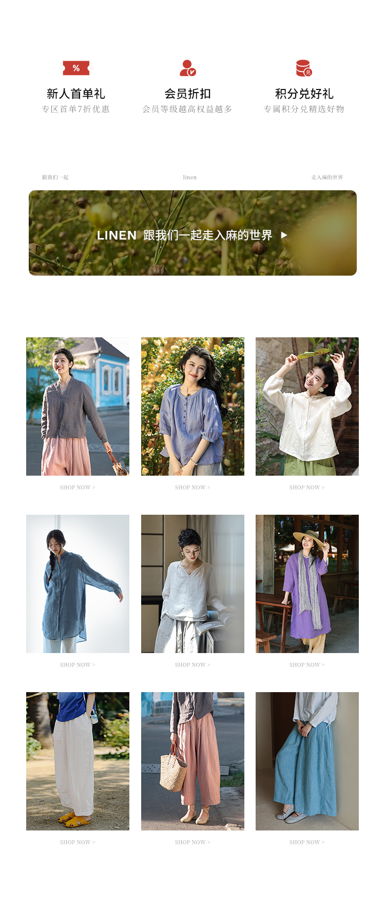 以天然亚麻为载体,融合热烈色彩与自在剪裁为身在城市、心怀远方的女性提供兼具美学与舒适的旅行着装