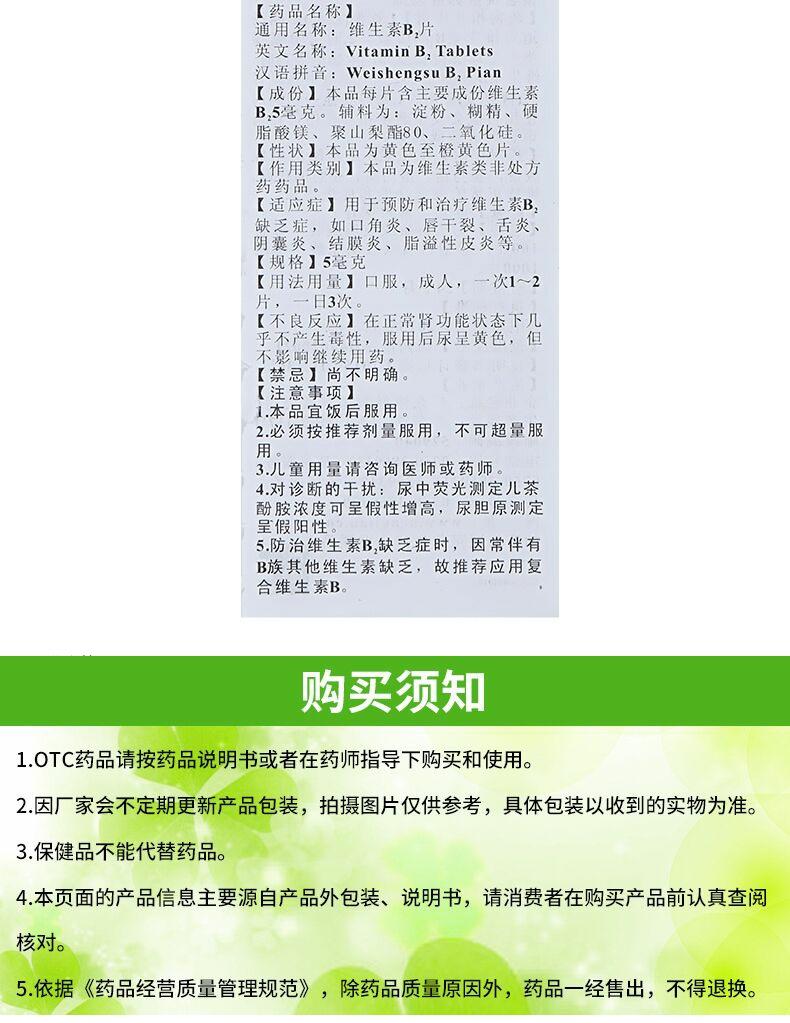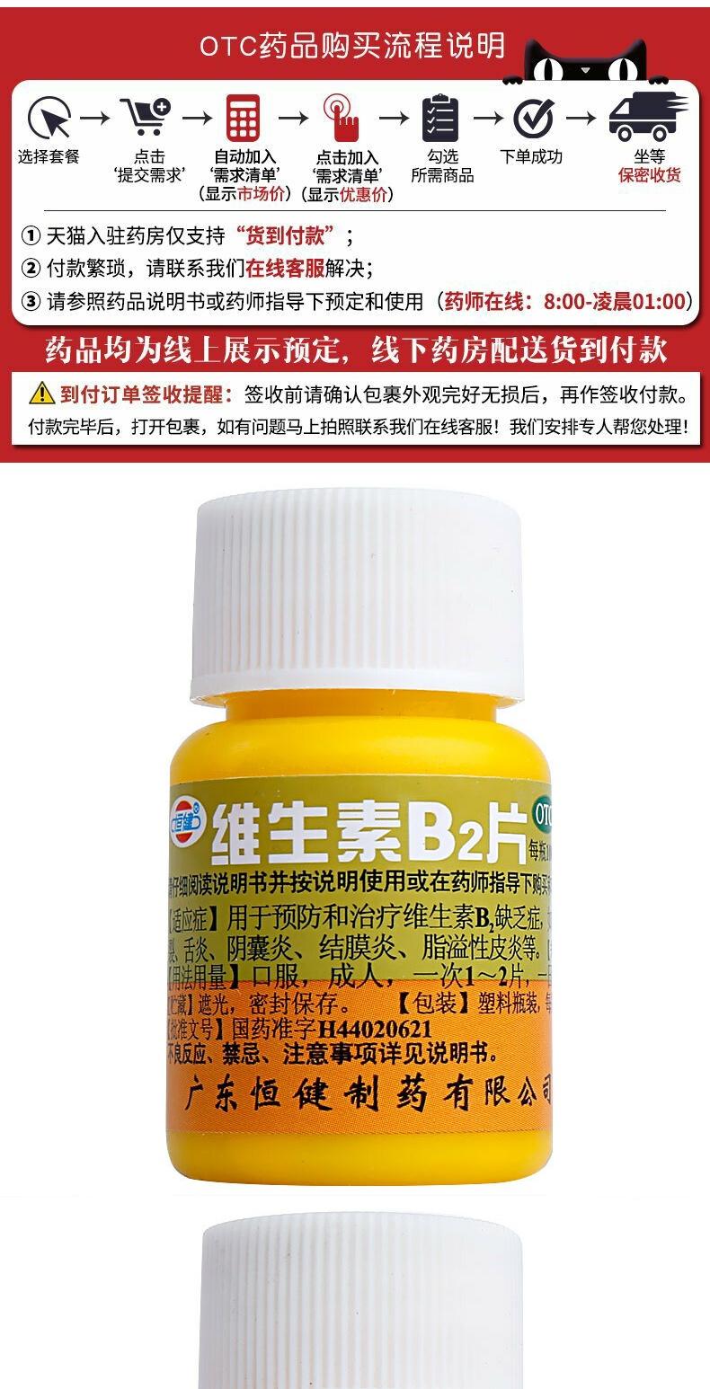 恒健 维生素B2片 100片 脂溢性皮炎 口角炎 唇干裂 舌炎 结膜炎