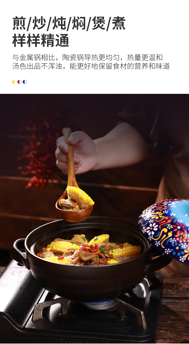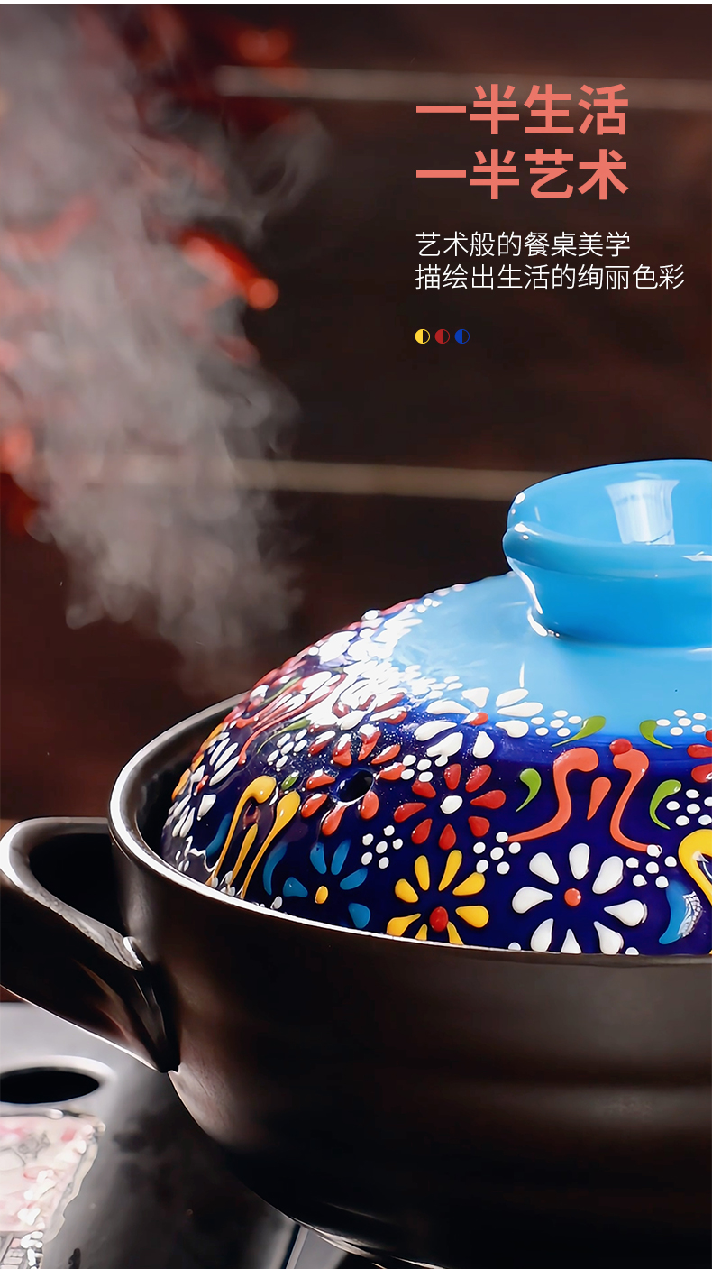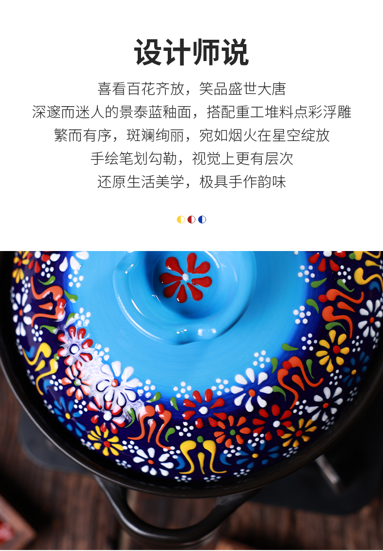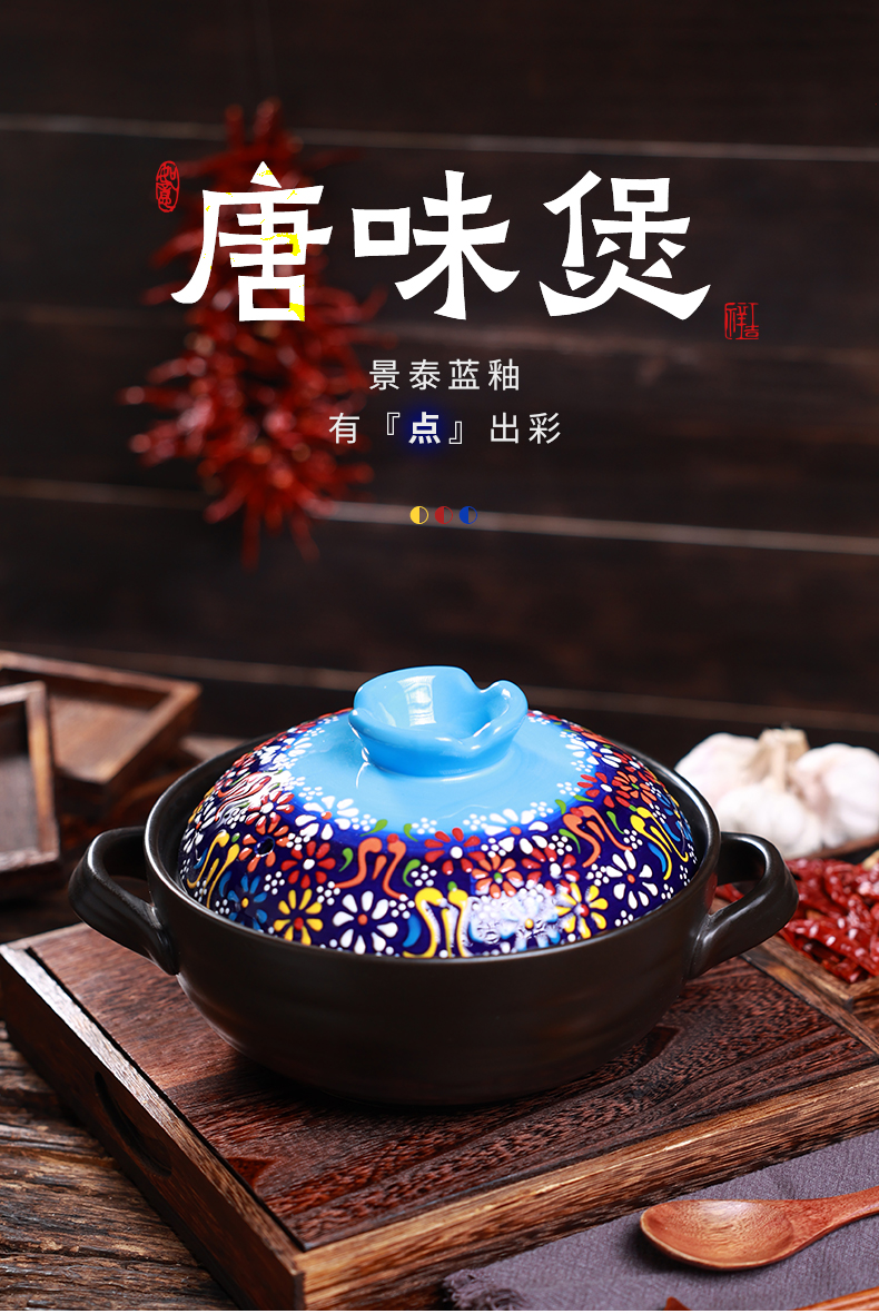 【景泰蓝唐味煲】陶煲王中式手绘陶瓷煲砂锅烹饪明火耐高温炖锅沙锅釉下堆彩