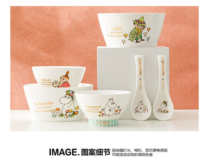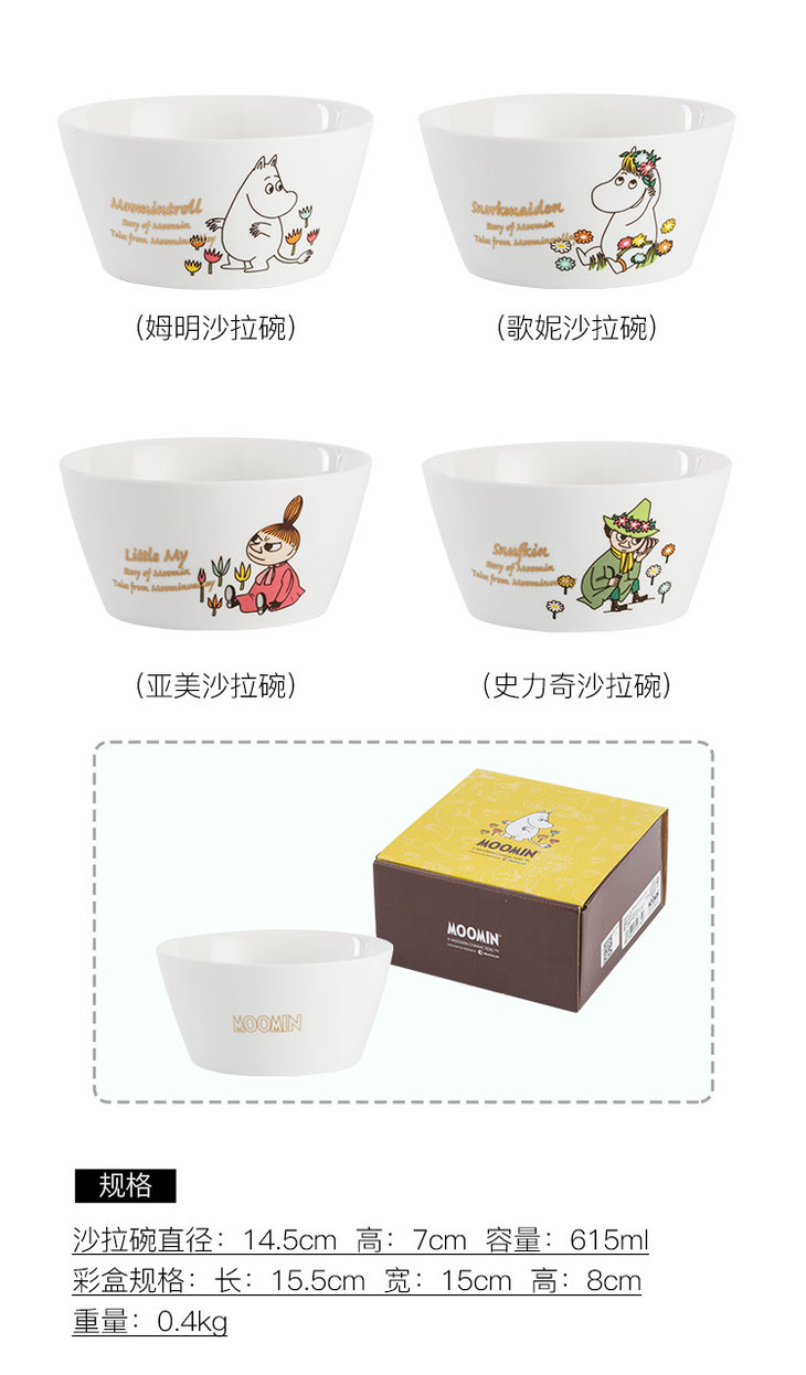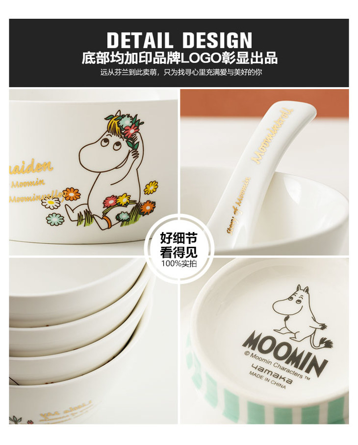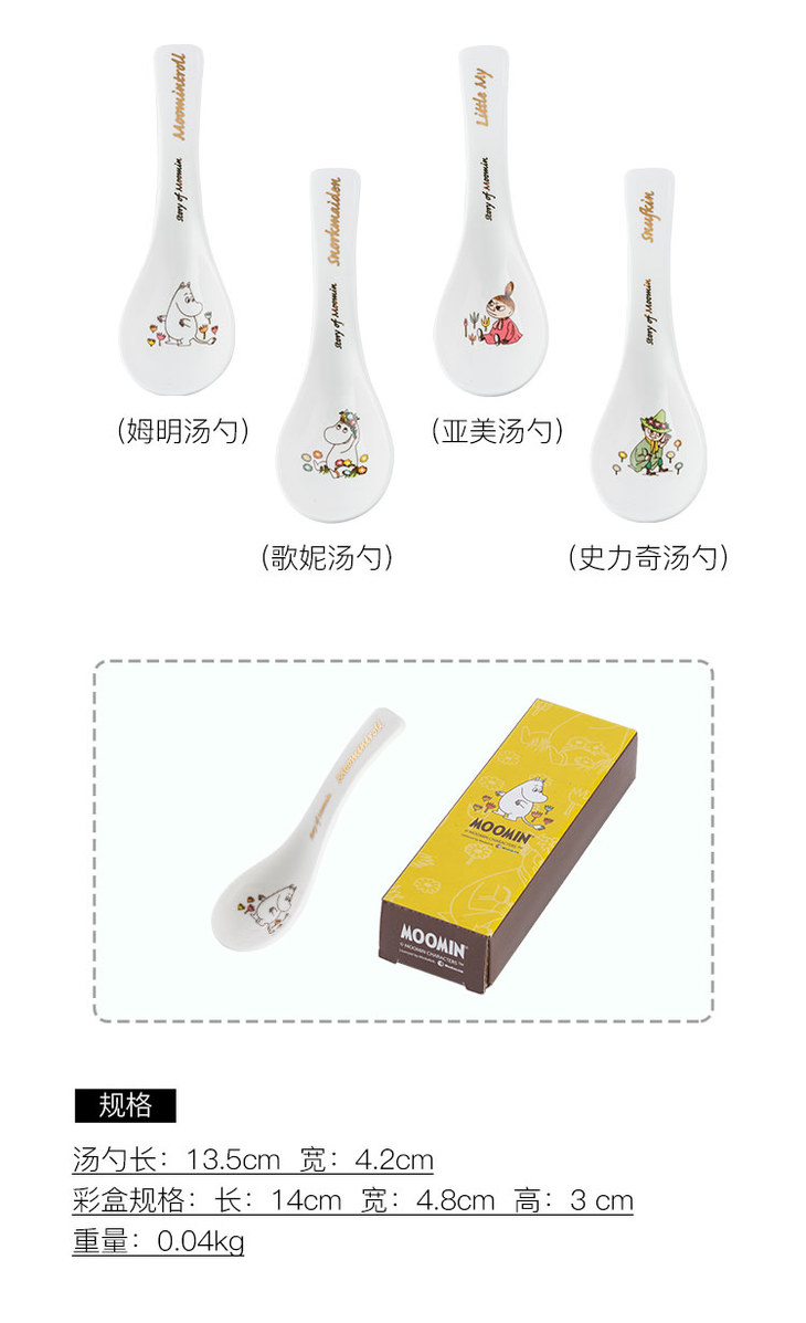 Moomin姆明生活日记汤勺 可爱陶瓷创意 勺子 沙拉碗 高脚碗
