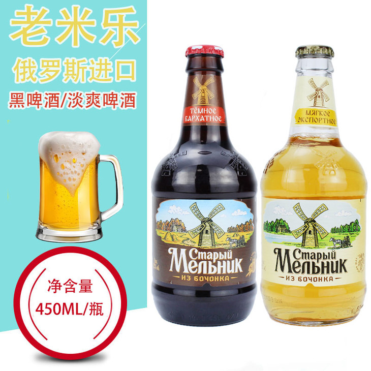 【备用】【多口味可选】俄罗斯 老米勒清爽纯麦啤酒450ml*12瓶