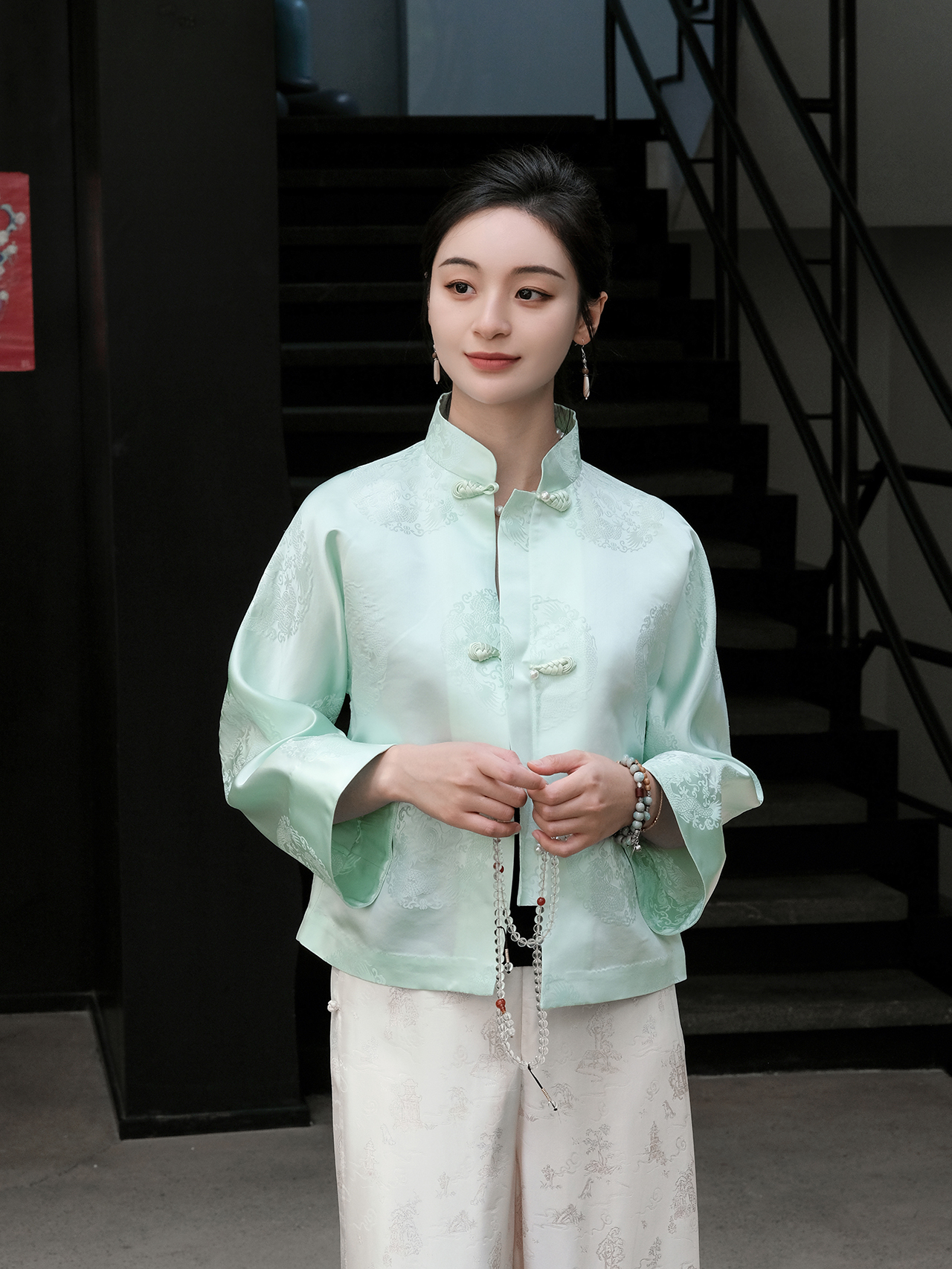 盛唐婧 |淡翠绿国风提花上衣[特价品]