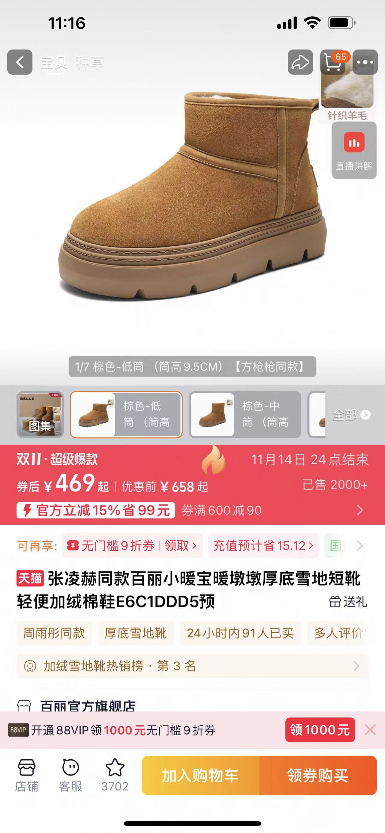 女靴子厚底雪地靴加绒冬季新款棉鞋防滑保暖勃肯短靴E4K1DDD5