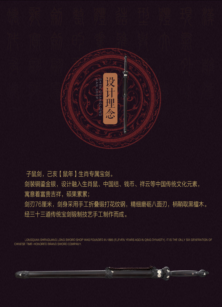 子鼠剑 花纹钢剑 刀剑 手工一体传统宝剑 龙泉沈广隆 宝剑 工艺品 未开刃