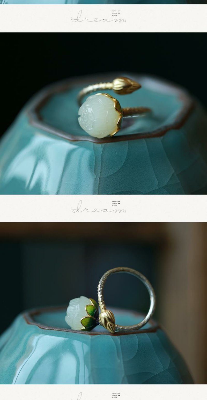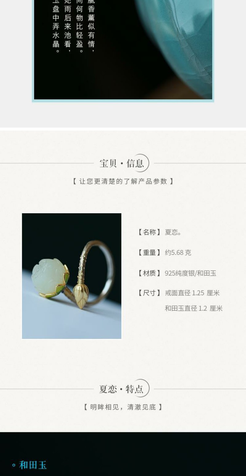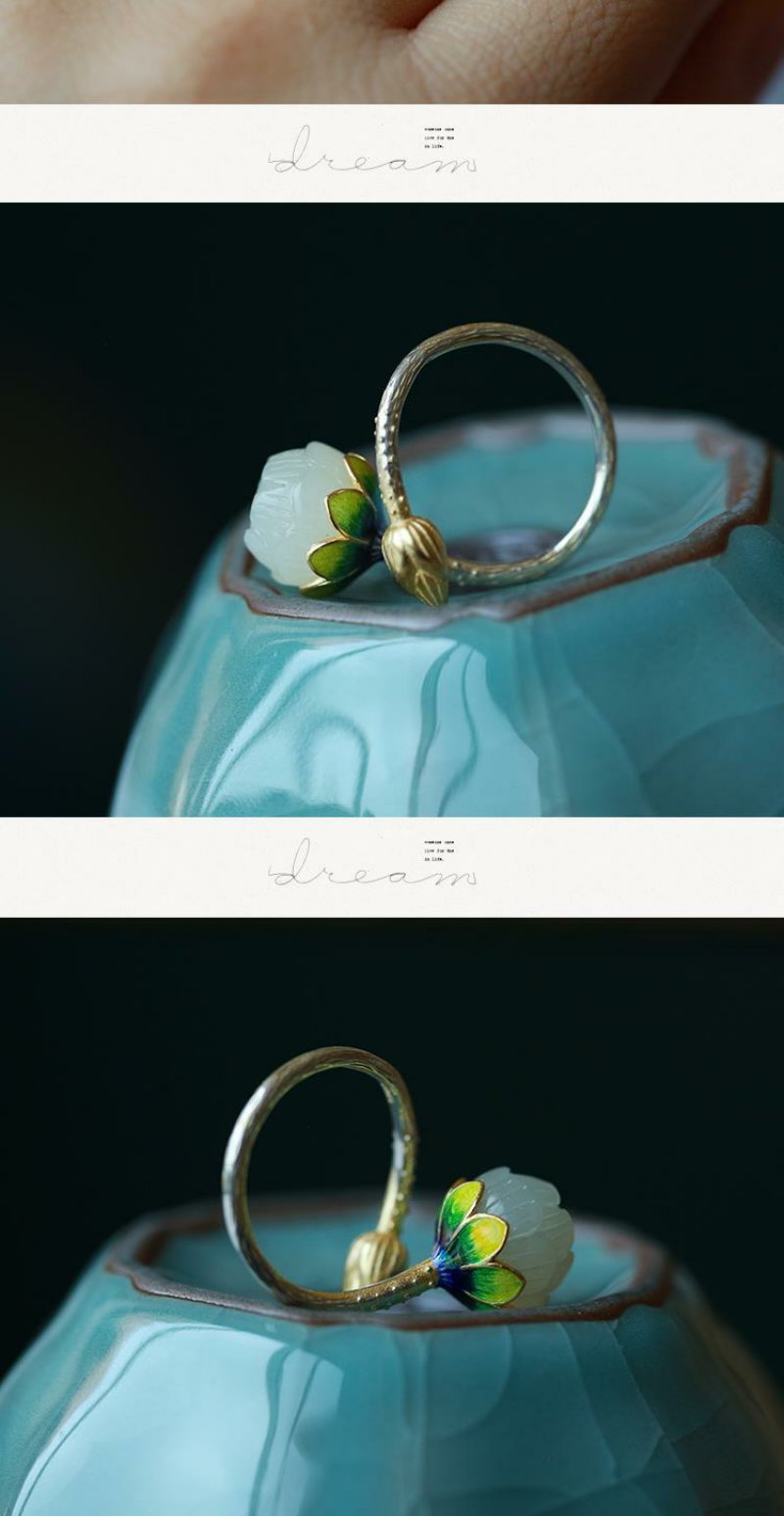 【夏恋。】银烧蓝饰品镶嵌莲花复古女款戒指指环