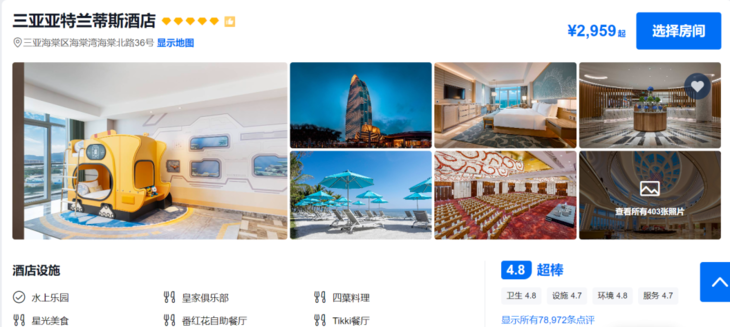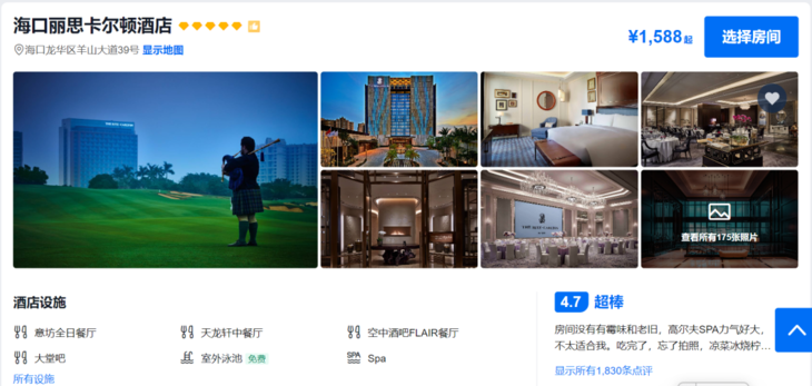 △海口丽思卡尔顿酒店/石梅湾艾美度假酒店/亚特兰蒂斯度假酒店 携程参考价格(10月份查询价格参考)
