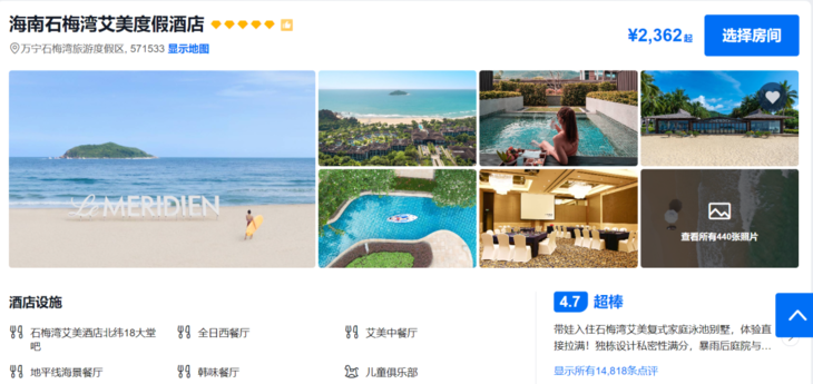 石梅湾艾美度假酒店基础房型¥2300+/晚