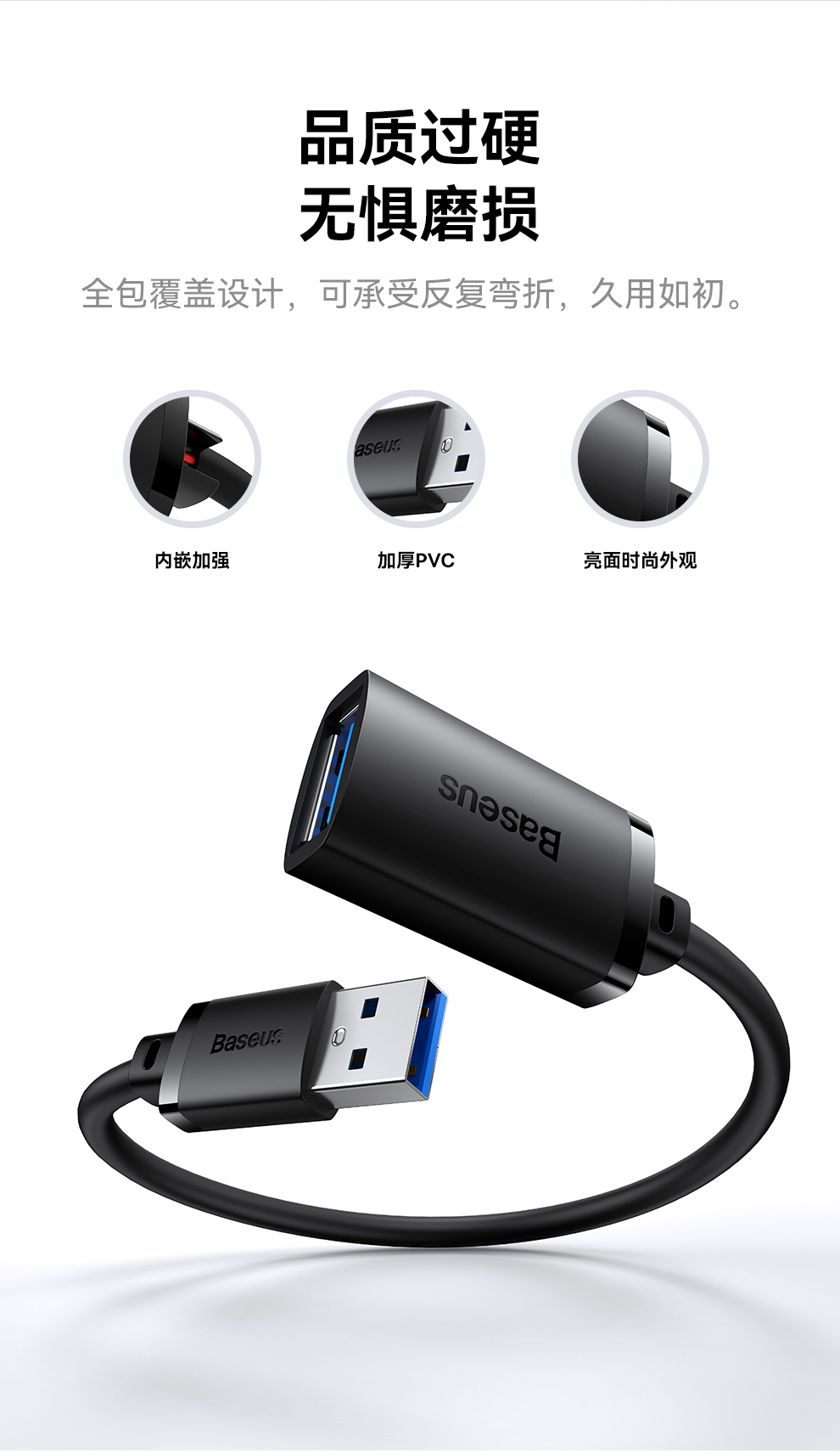 倍思 优胜系列快充数据线USB to M+L+C 3.5A 1.5m