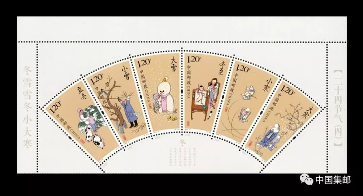 这个特殊版式“大团圆”,早在2015年《二十四节气》邮票启动时就已经完成了整体策划,将四套24枚邮票形成一个圆,既表达了地球是圆的,四季周而复始、气韵流动的理念,同时也传达了中国古代文化中圆满、圆融的概念。