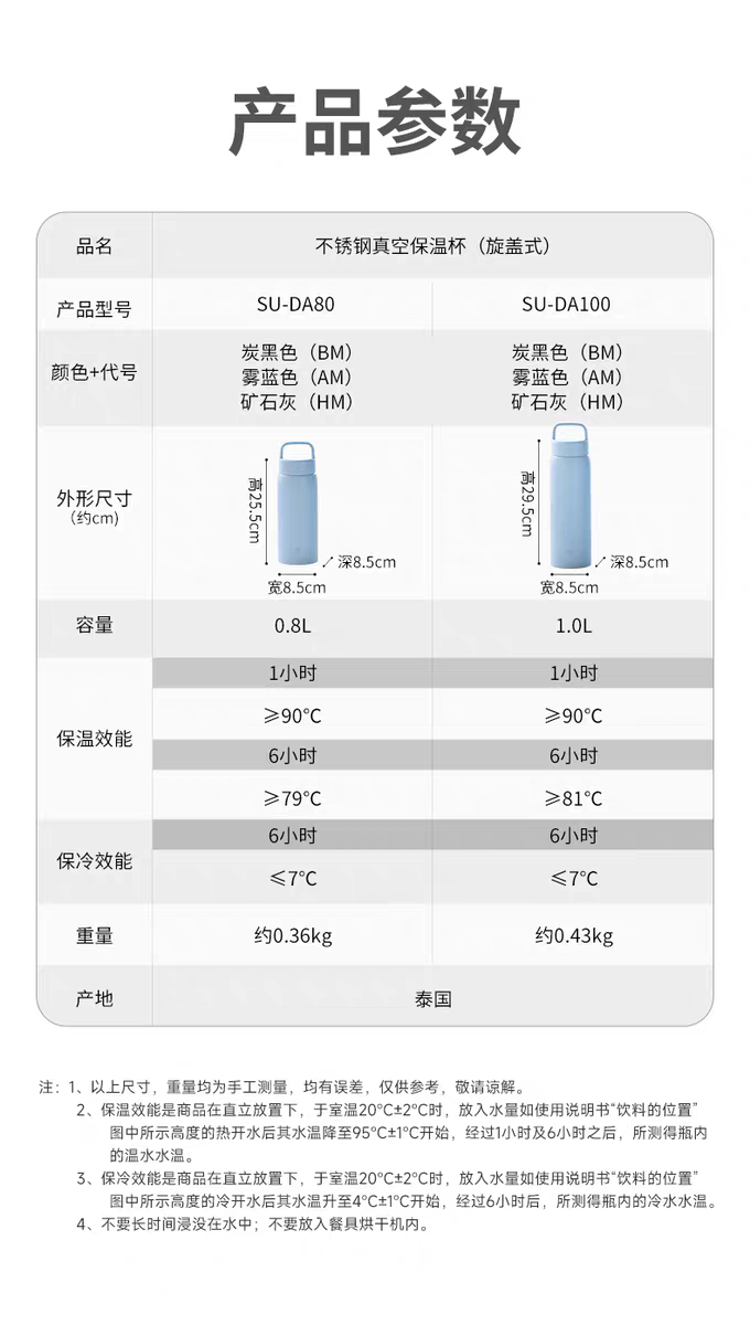 【6F】象印大容量不锈钢外出便携保温杯DA80/100