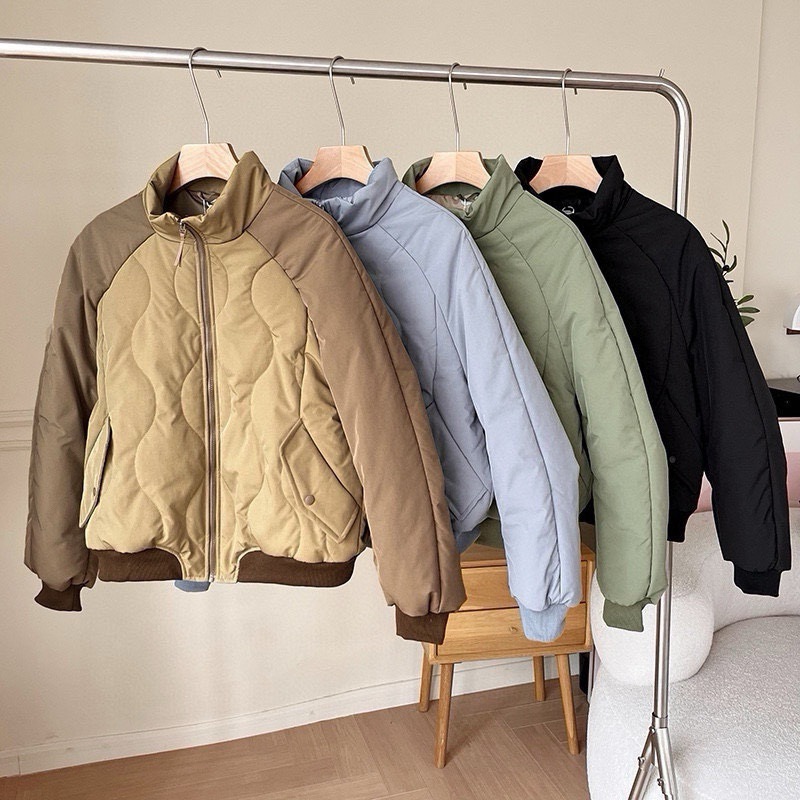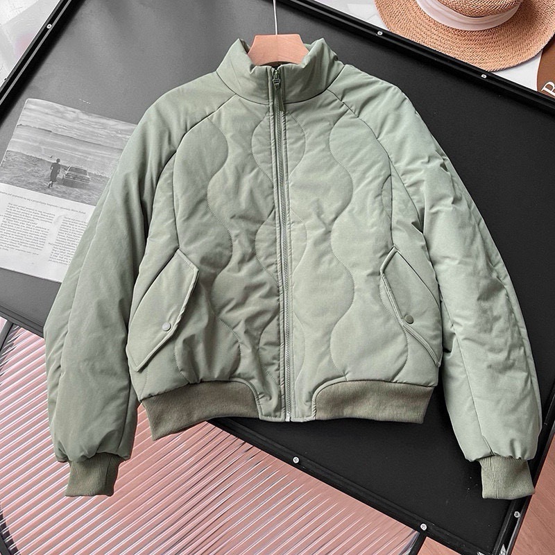 外贸原单!2024新款女士气绒夹克美式飞行员宽松立领羽绒棉衣夹棉!