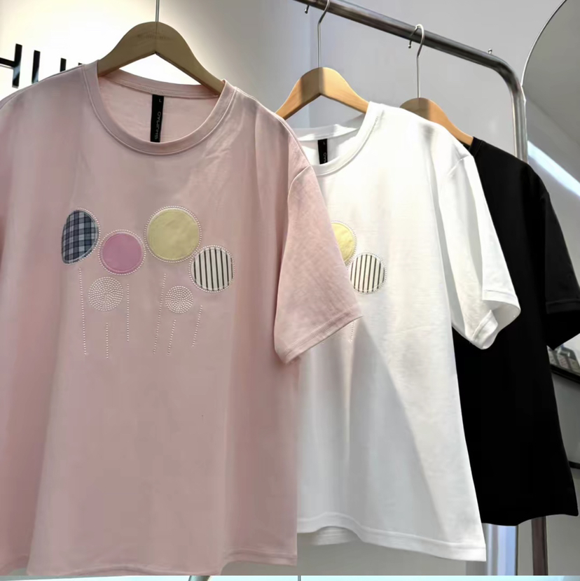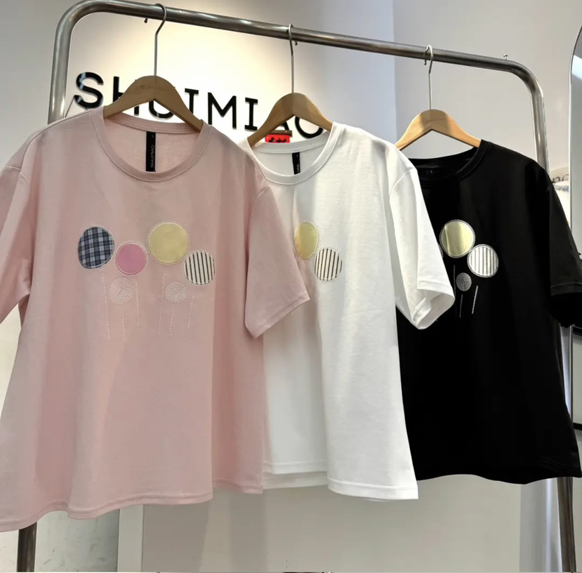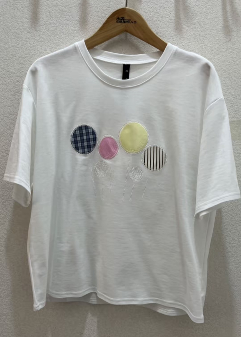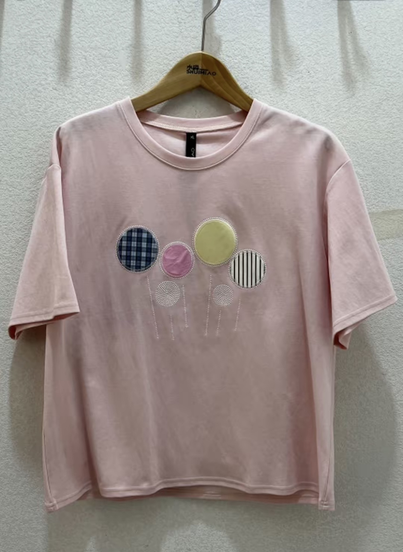 水淼2026春新款纯棉贴补气球印花短袖2543