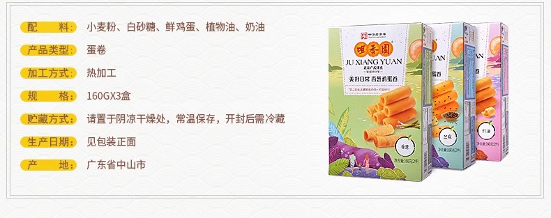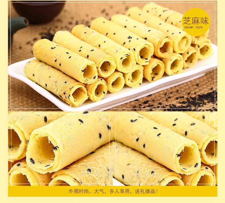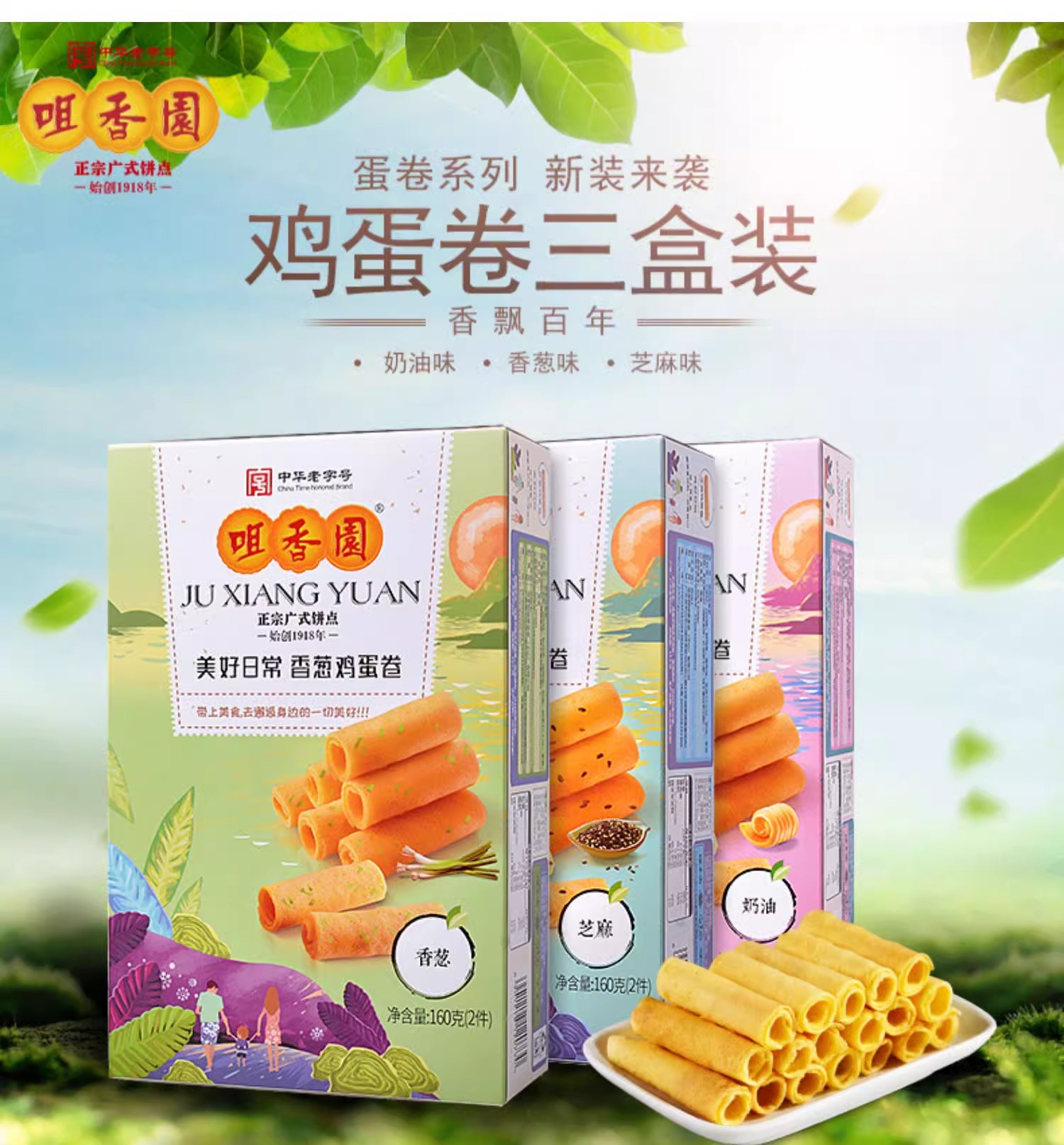 【咀香园休闲装鸡蛋卷160g】 芝麻味香葱味奶油味 三口味可选