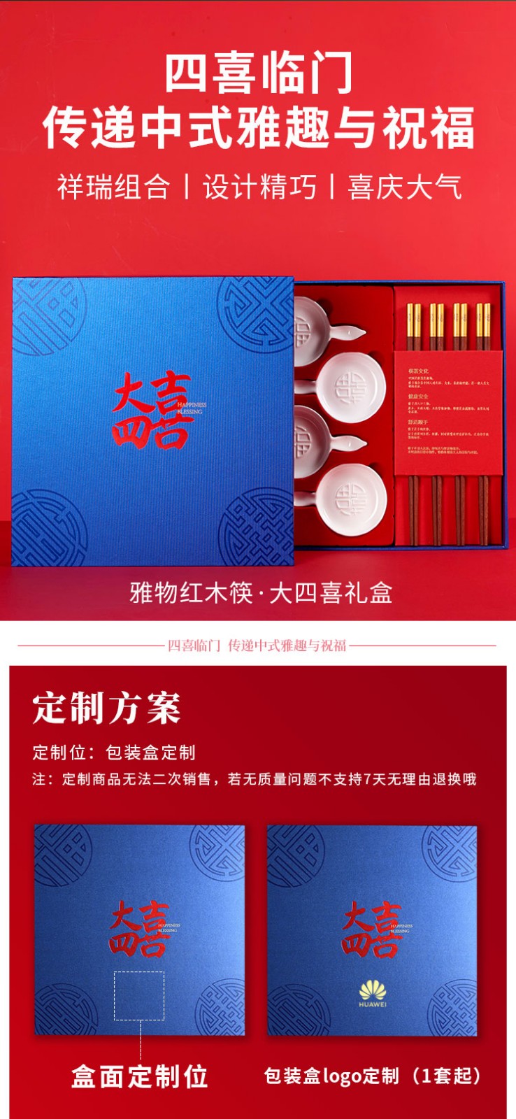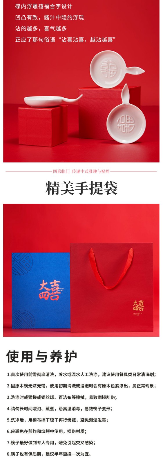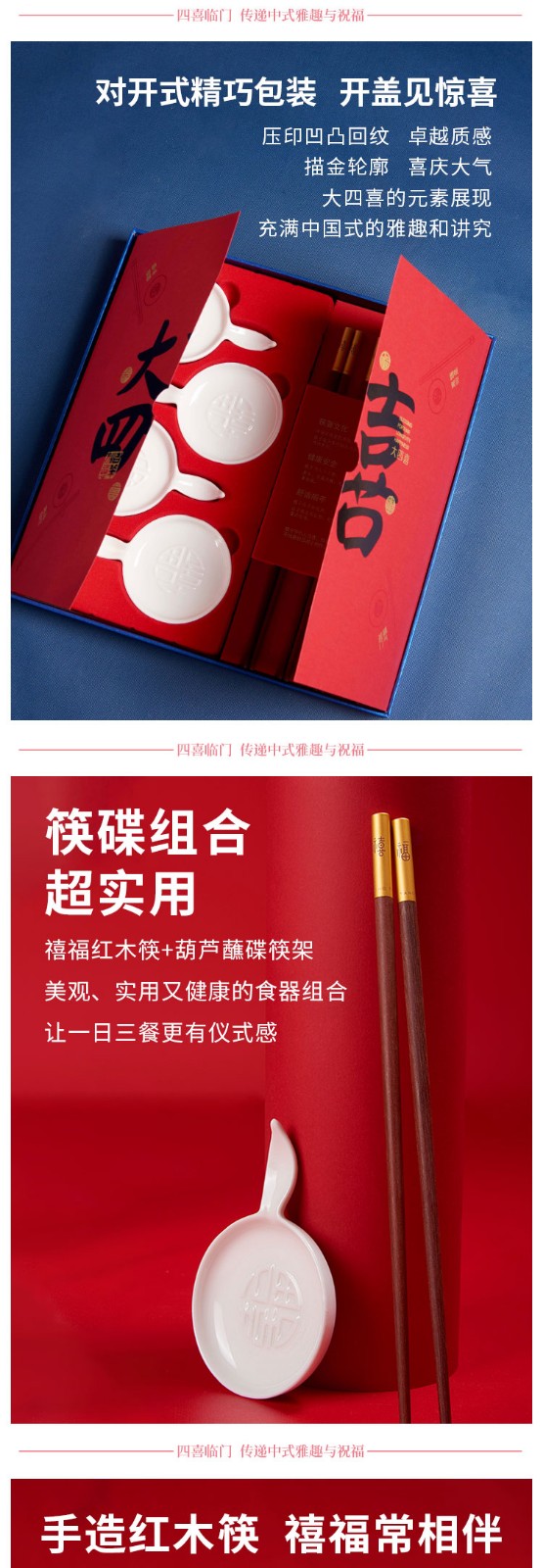 清朴堂 大四喜单层 无漆无蜡碟筷乔迁婚庆中国风套装走亲访友礼品