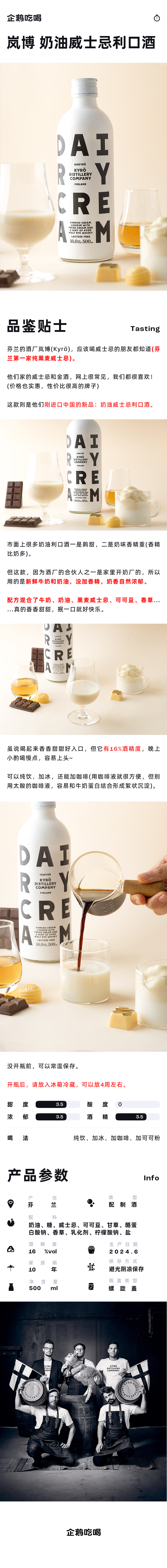 企鹅市集|芬兰 岚博Kyro 奶油威士忌利口酒 黑麦威士忌 加入新鲜牛奶 奶香自然浓郁