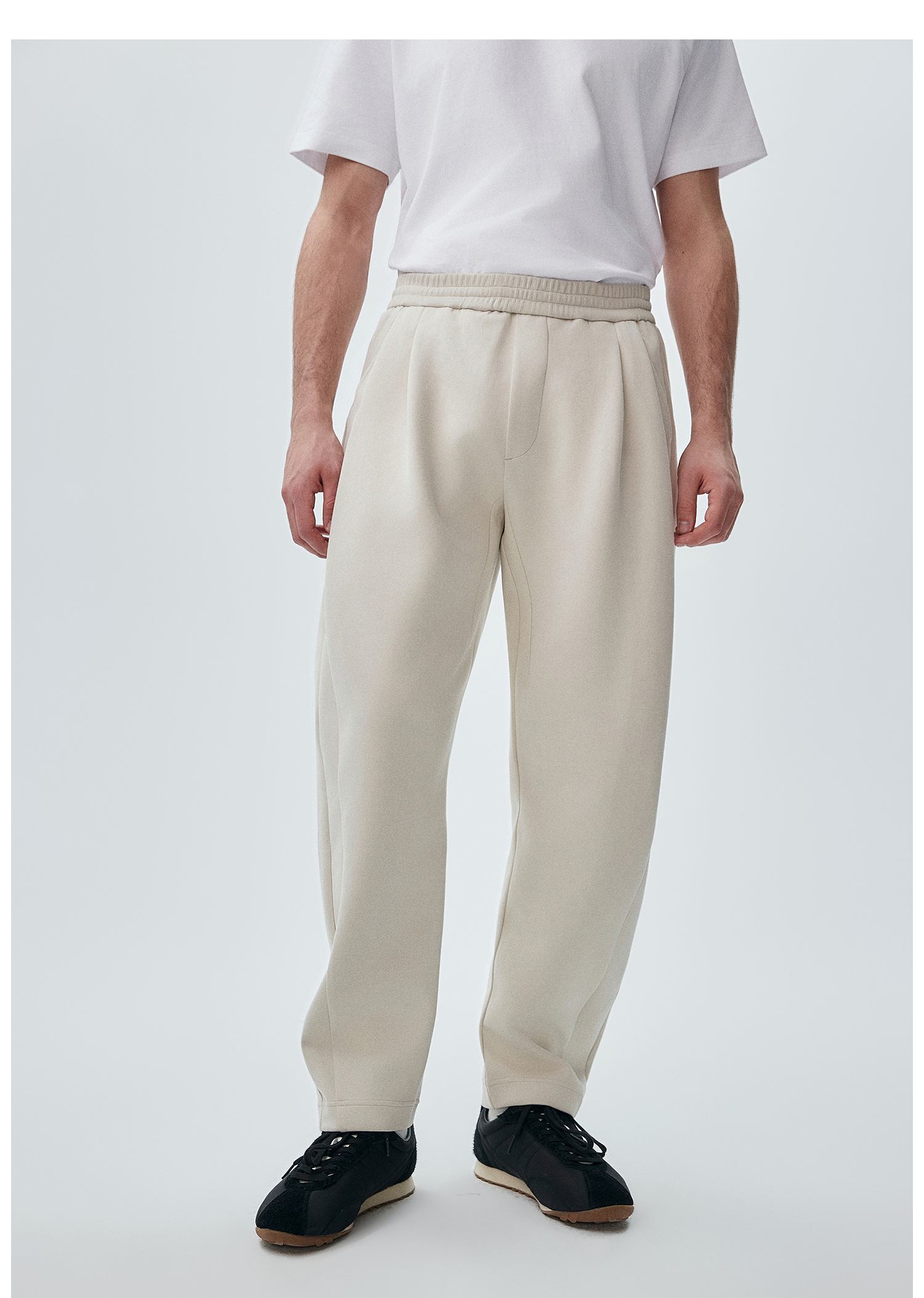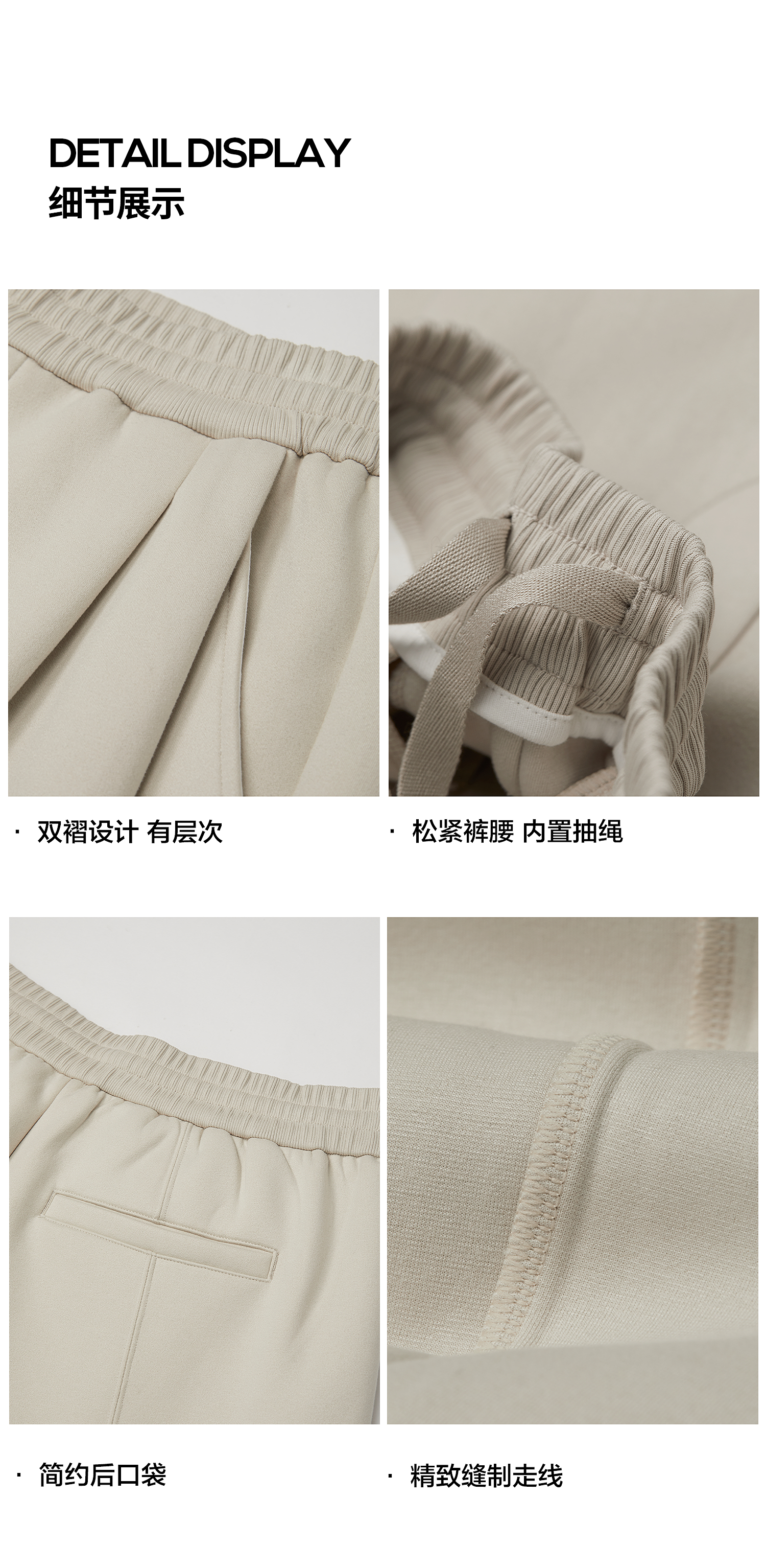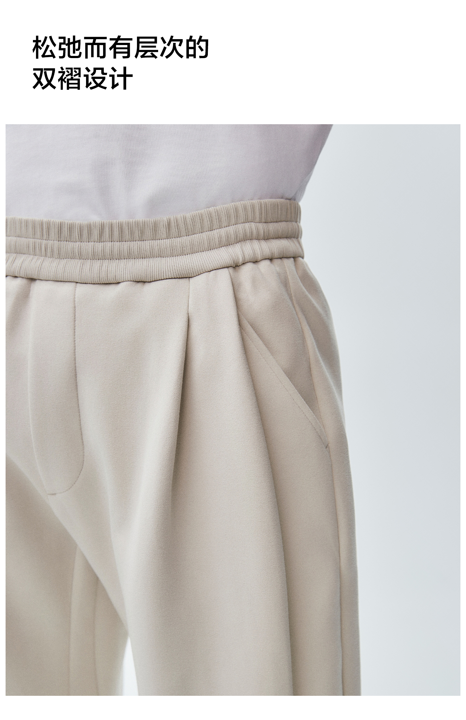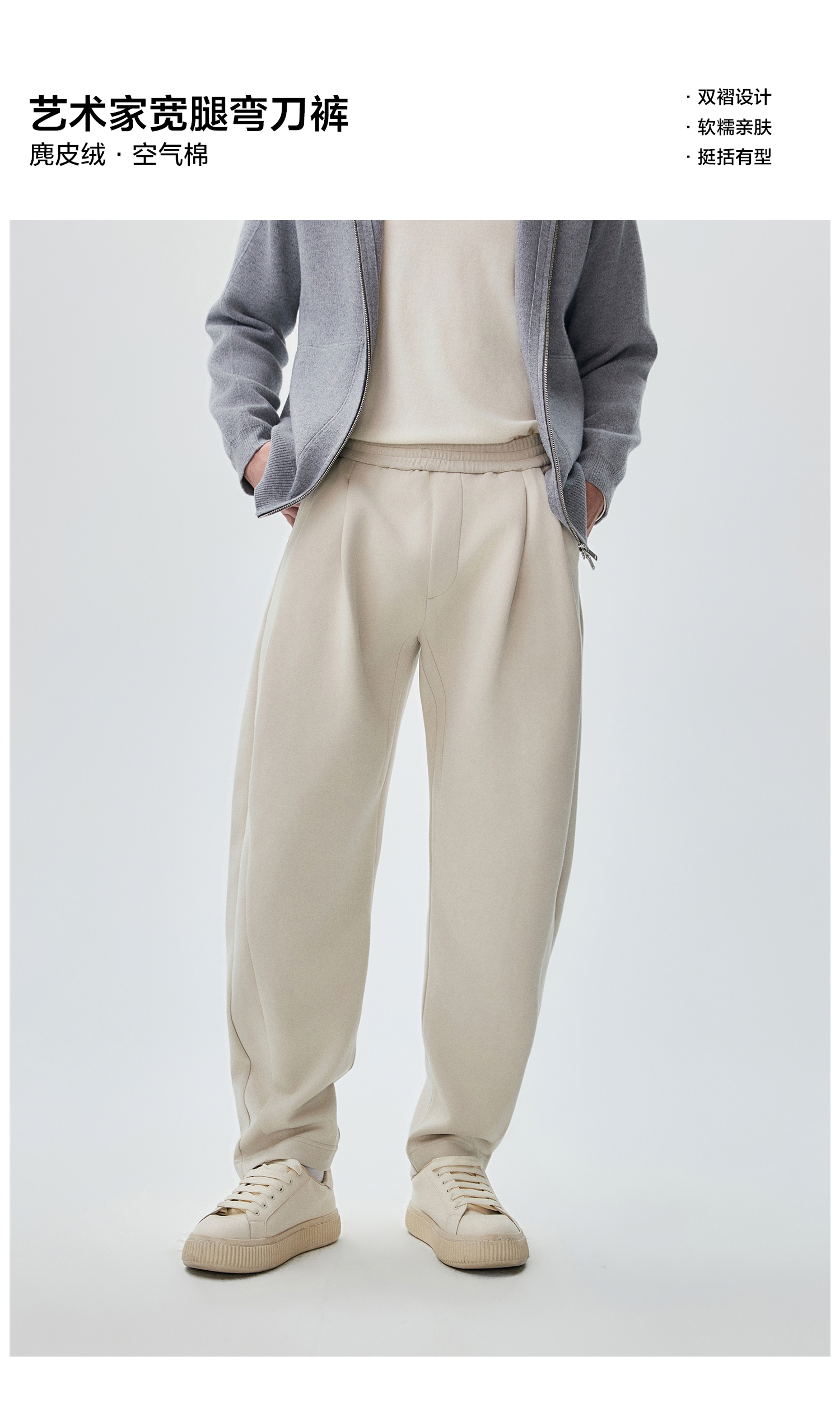 棉仓362818019-麂皮绒弹力双面宽松打褶弯刀卫裤
