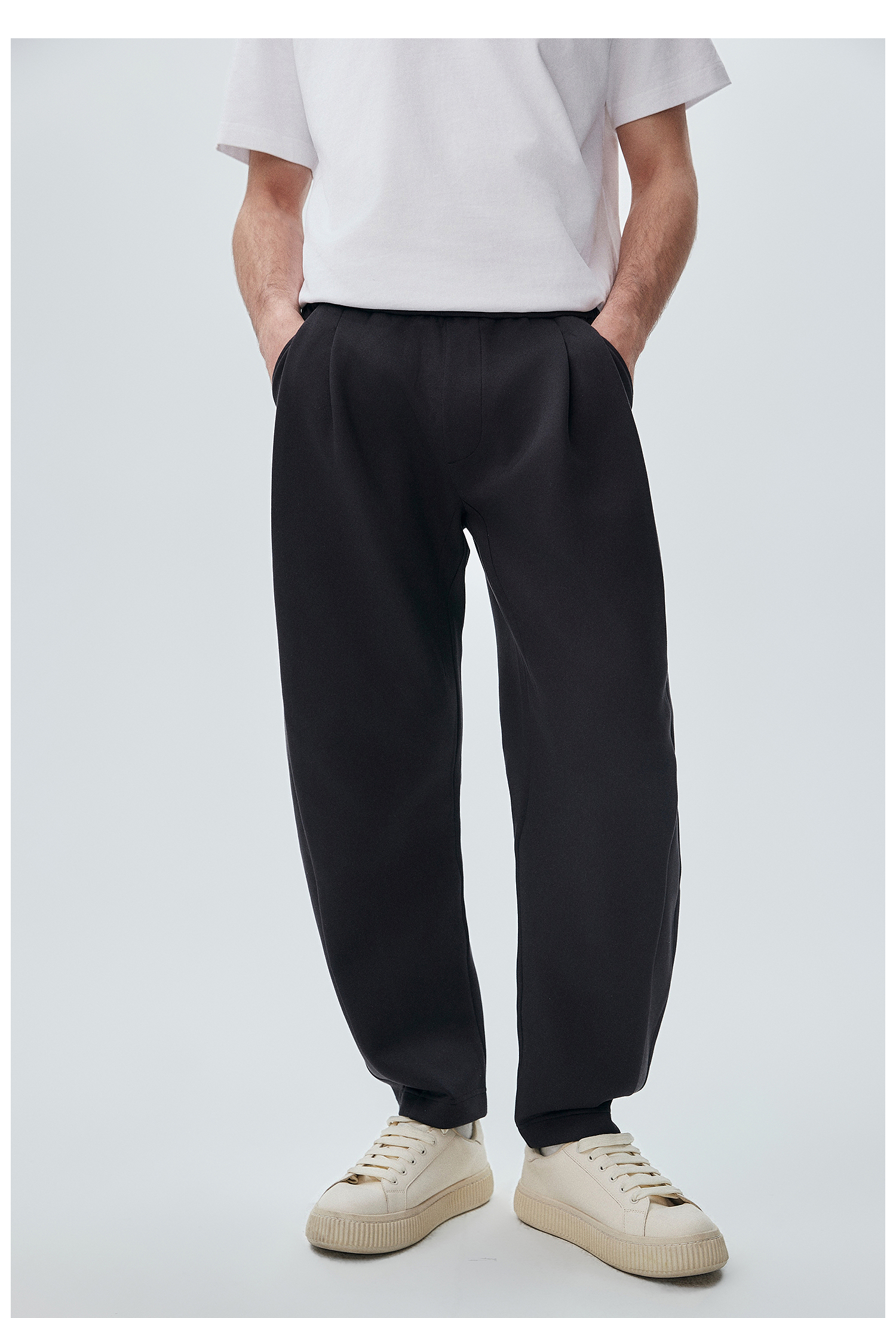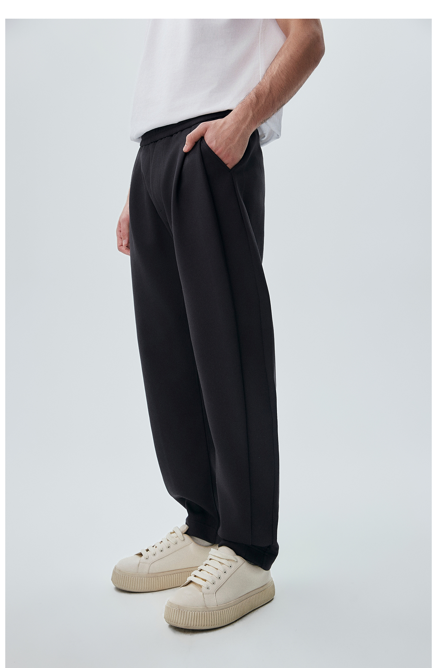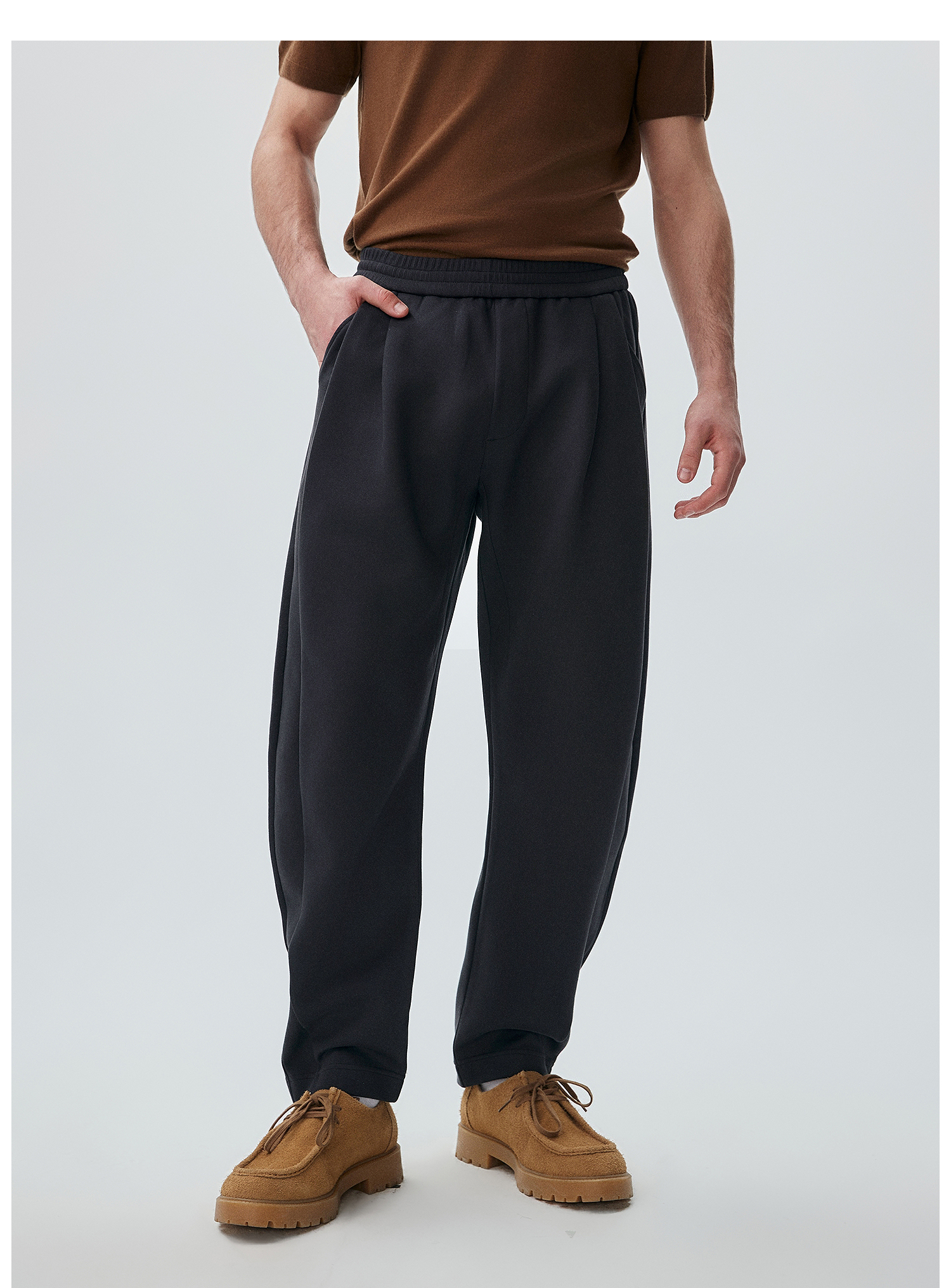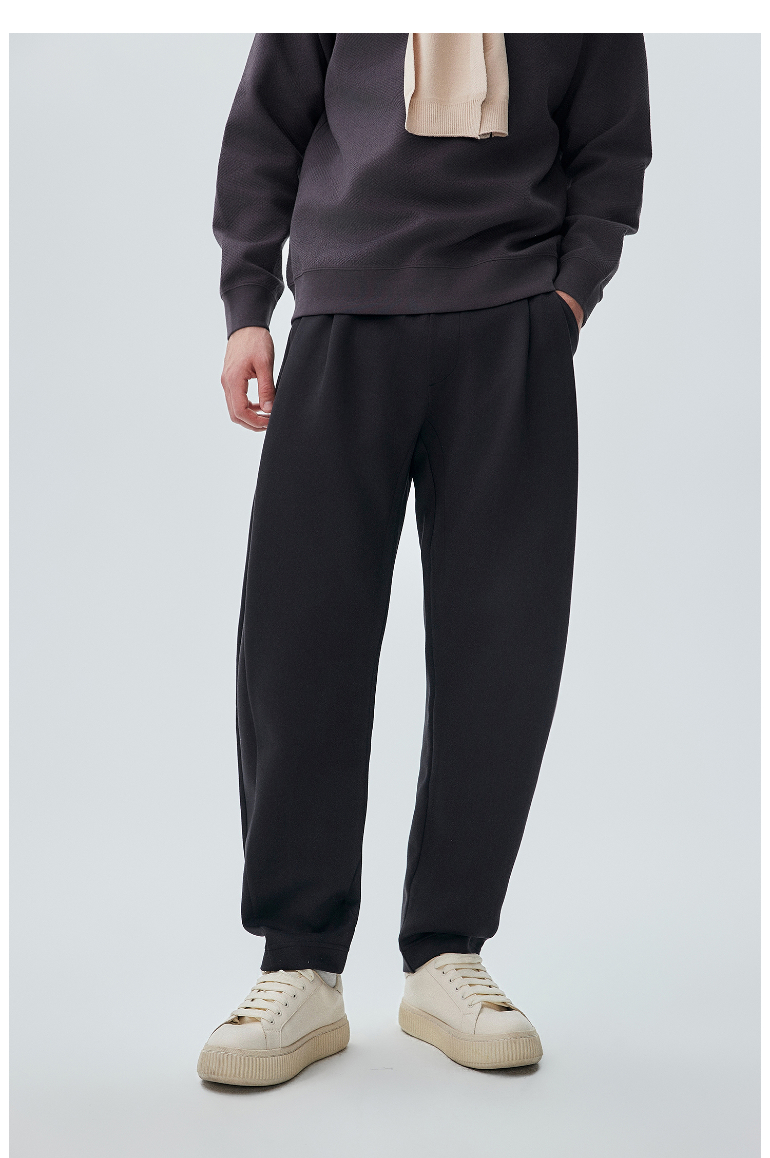 棉仓362818019-麂皮绒弹力双面宽松打褶弯刀卫裤