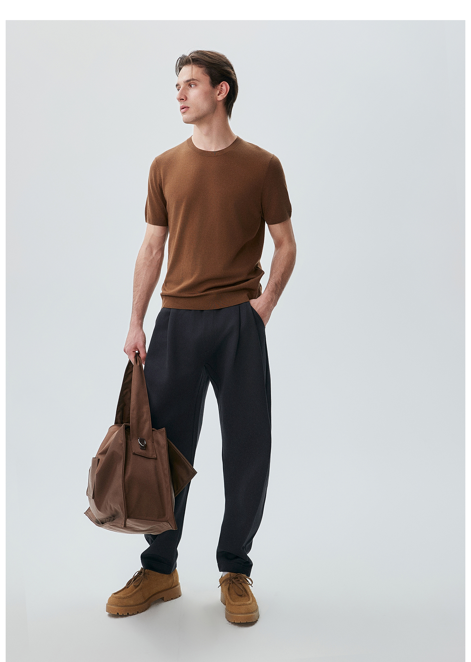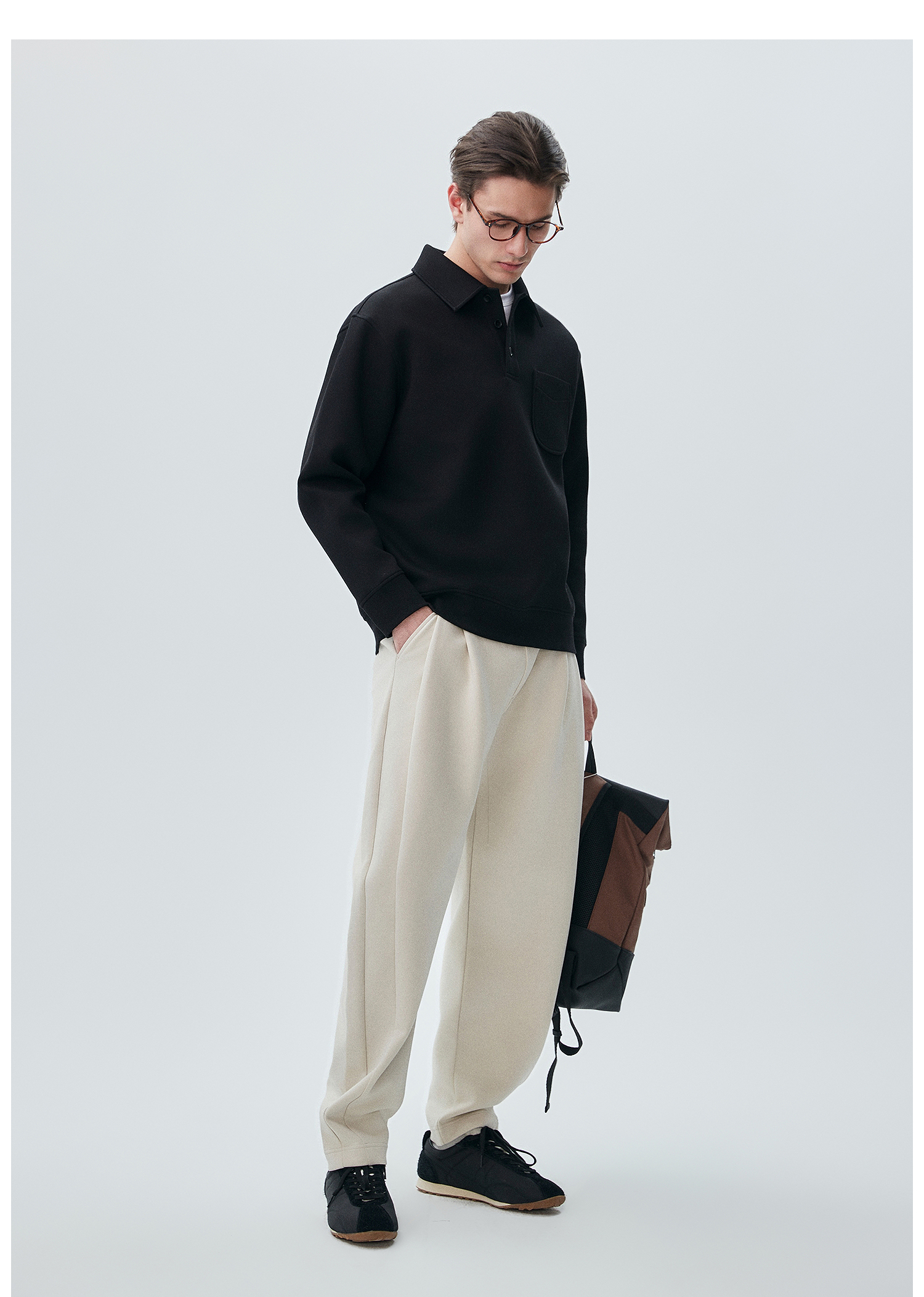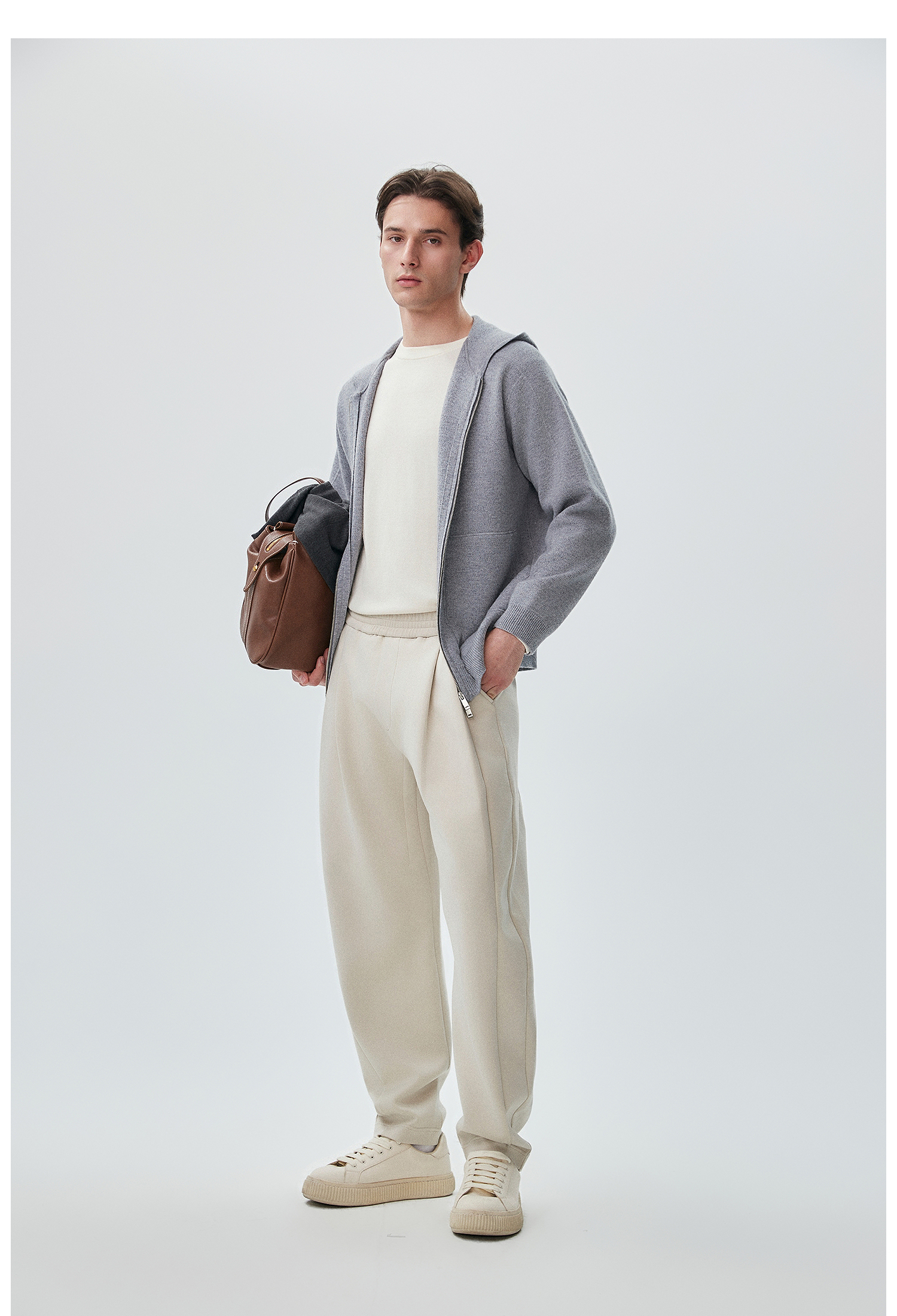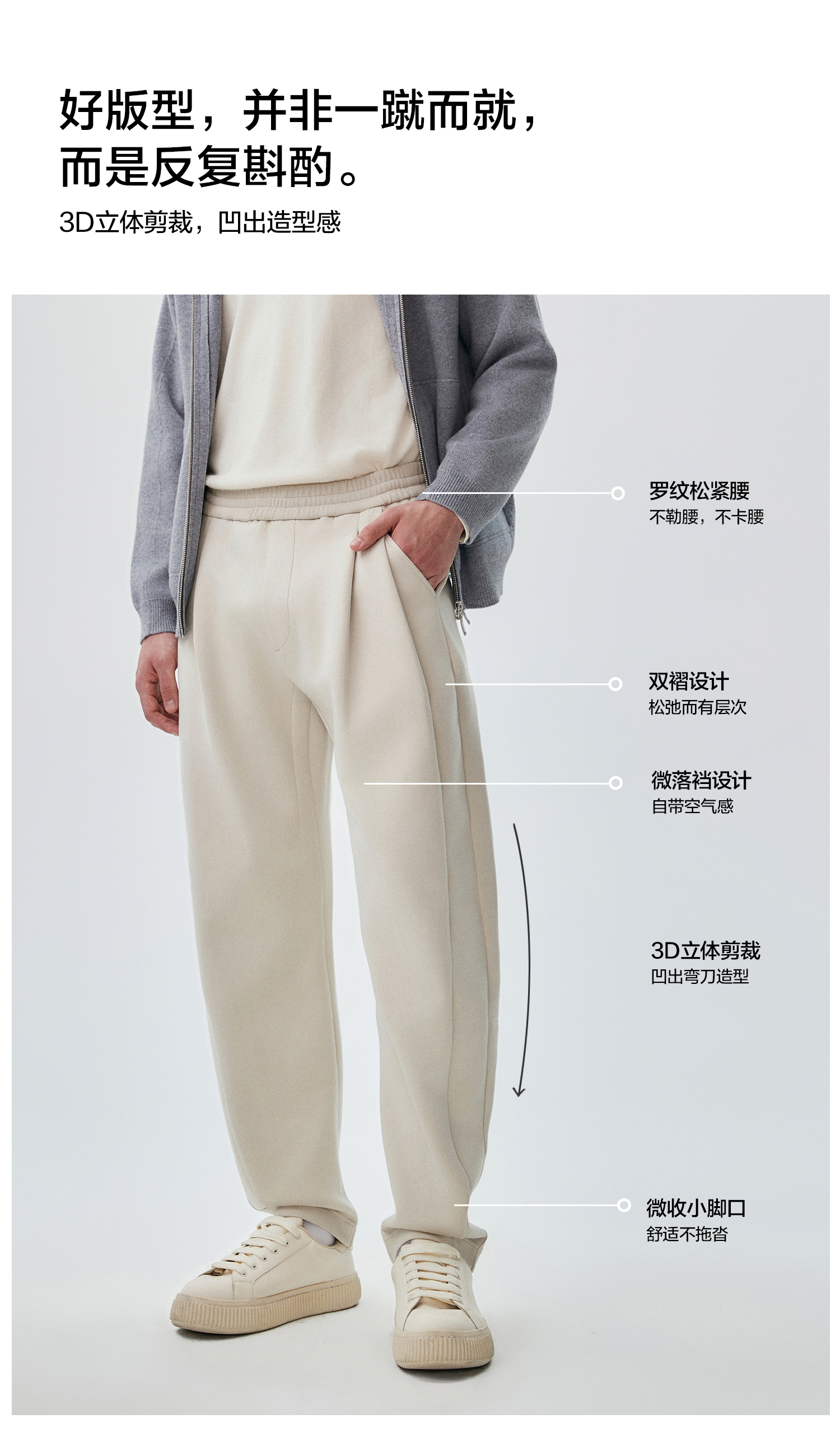 棉仓362818019-麂皮绒弹力双面宽松打褶弯刀卫裤
