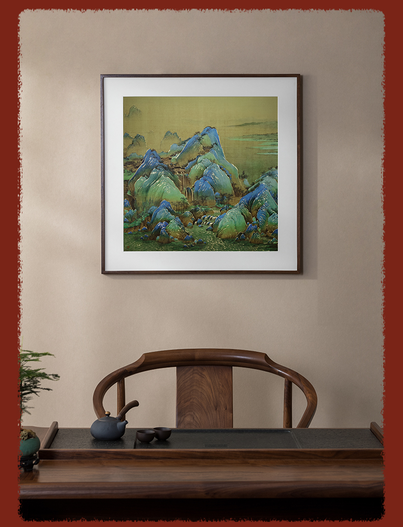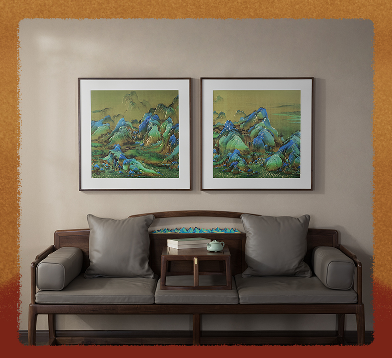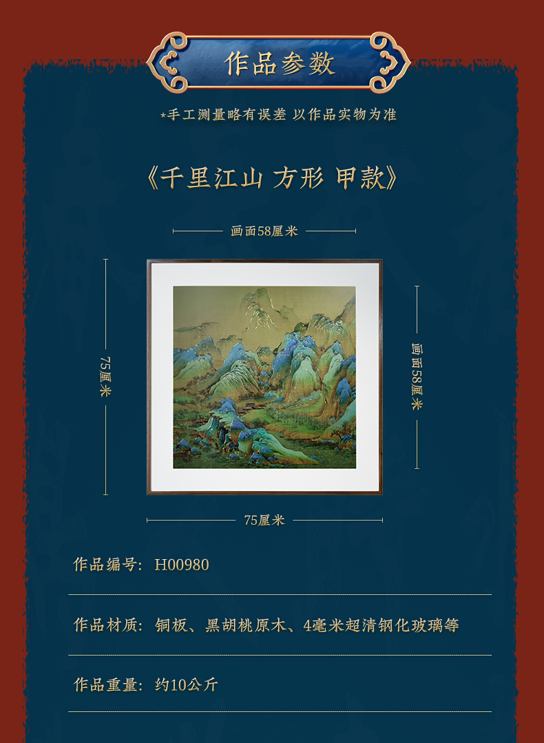 铜师傅 手工錾刻 铜雕画《千里江山 方形》客厅背景墙装饰挂画