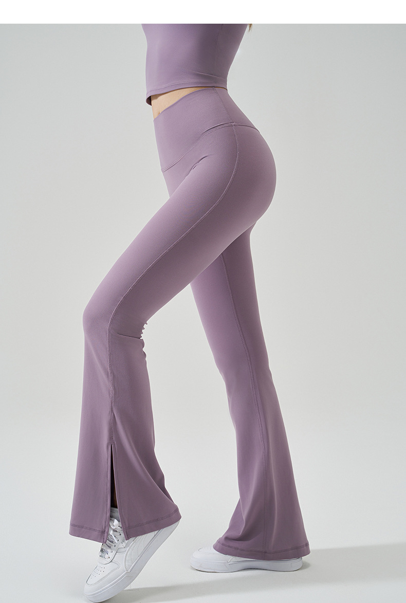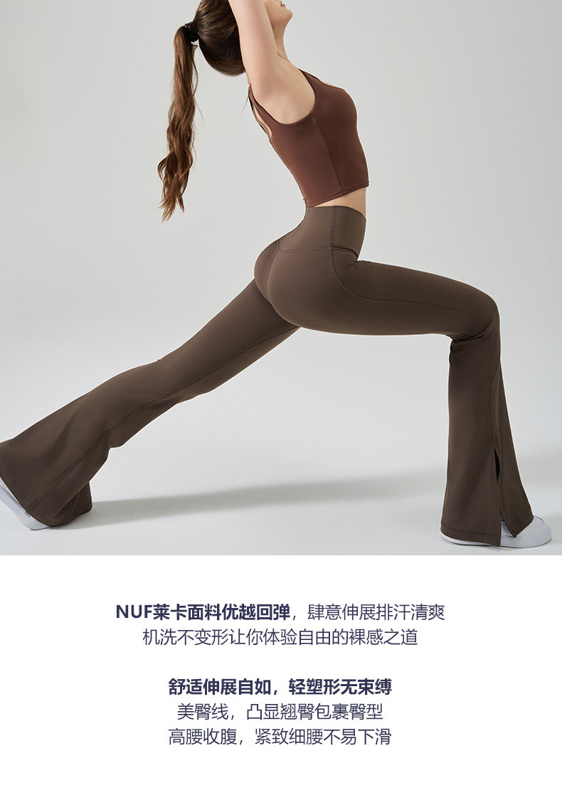跃牌【轻匀系列】NF裸感无尺码瑜伽裤春秋新款开叉微喇健身裤高腰提臀运动裤CK41006