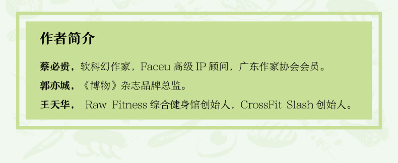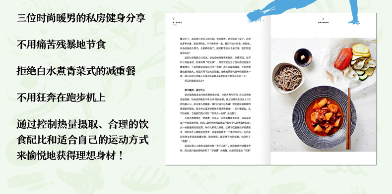 这是一本由三位通过科学饮食+运动获得理想身型的时尚暖男带来的私家分享,关于减重健身你需要知道的知识、值得借鉴的要避开的误区……给所有想健康瘦下来的都市人群一份易操作、超高效的减脂、强健指南。